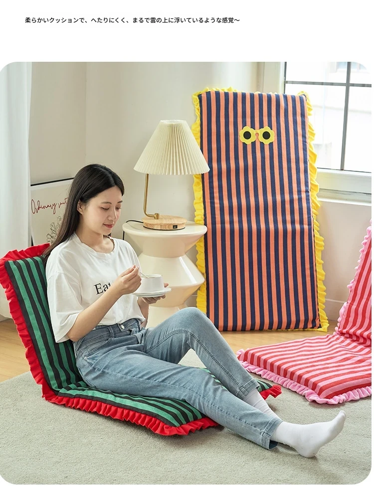 日本風のリラックスソファ!折りたたみ式畳スタイルの一人用、狭いスペースにもピッタリなバルコニーや窓際用チェア。人気の宿舎向け、ベッドサイドでのくつろぎタイムに最適な背もたれ付き!