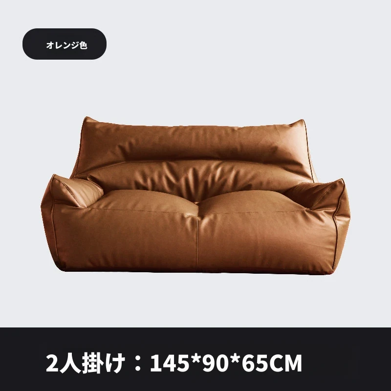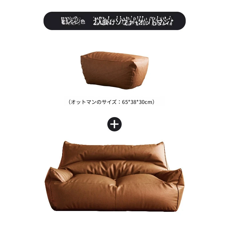 オレンジのソフトレザー二人用+フットスツール【配達】