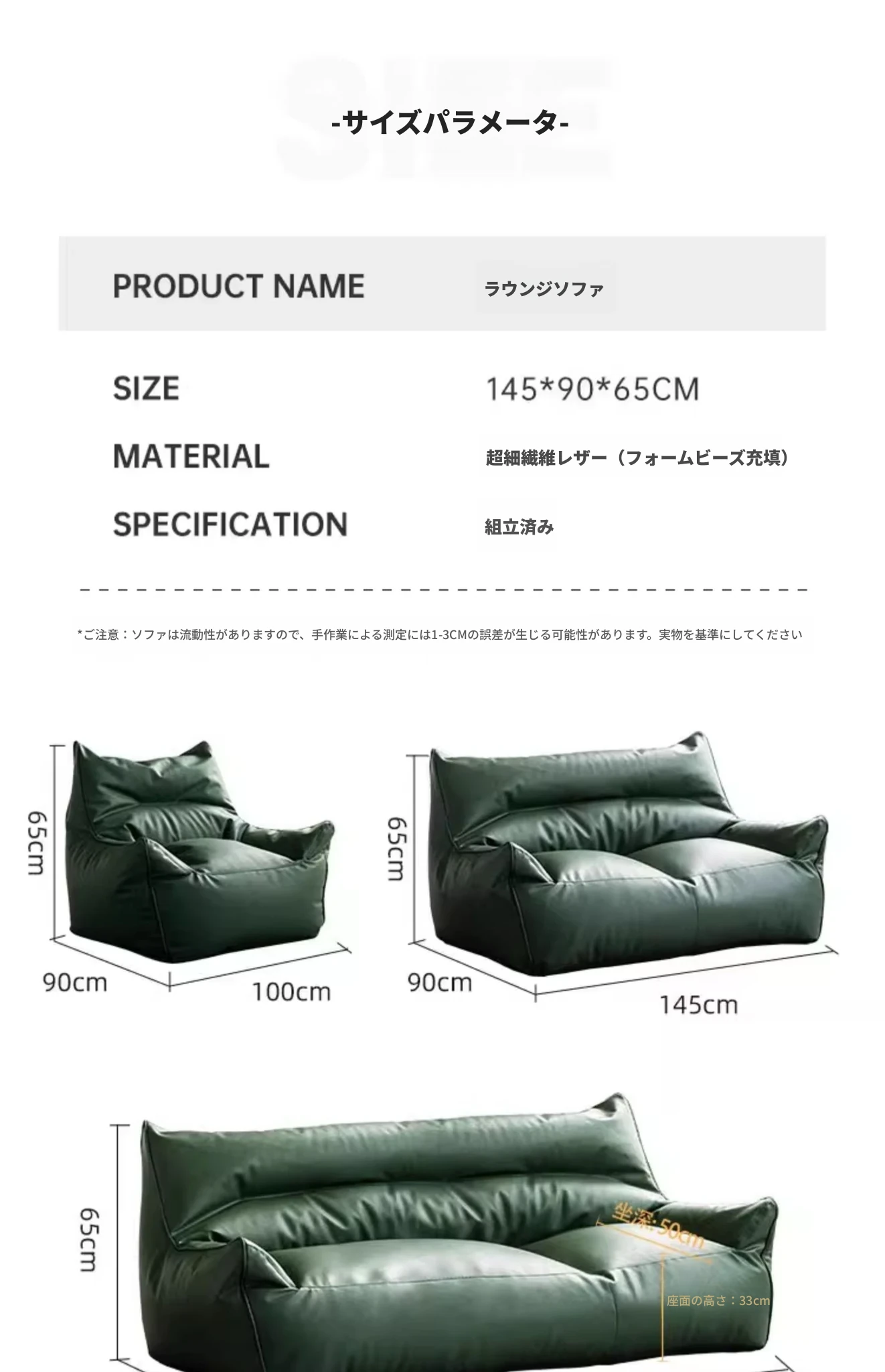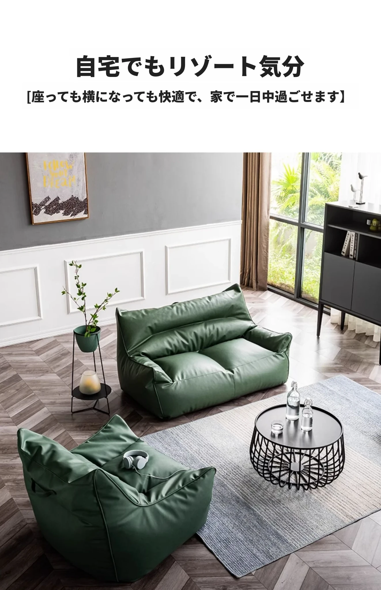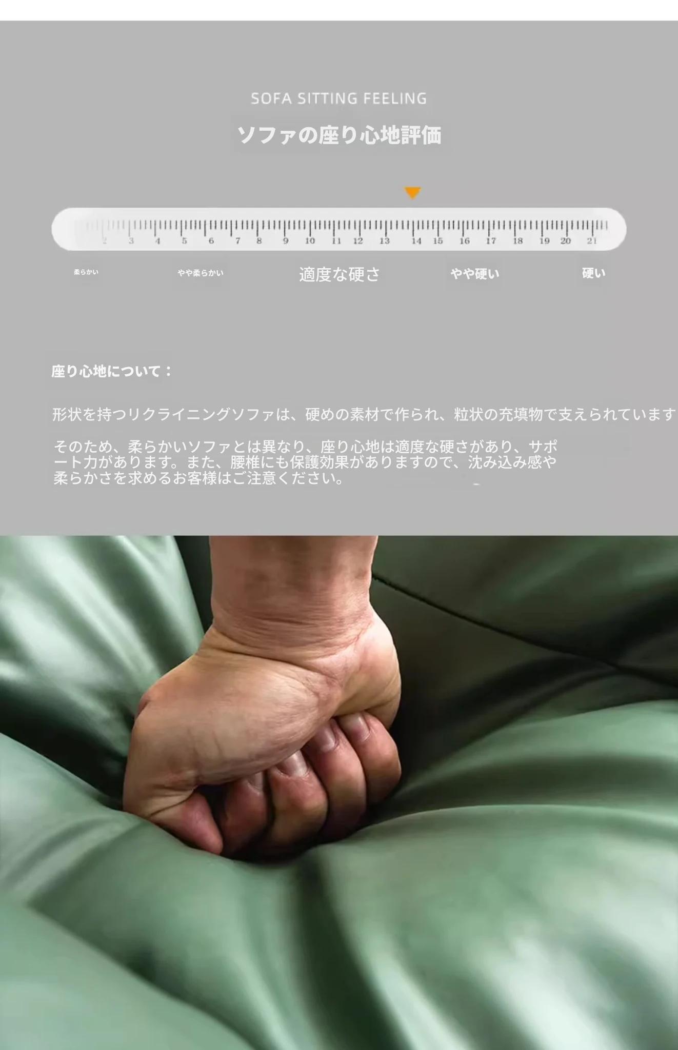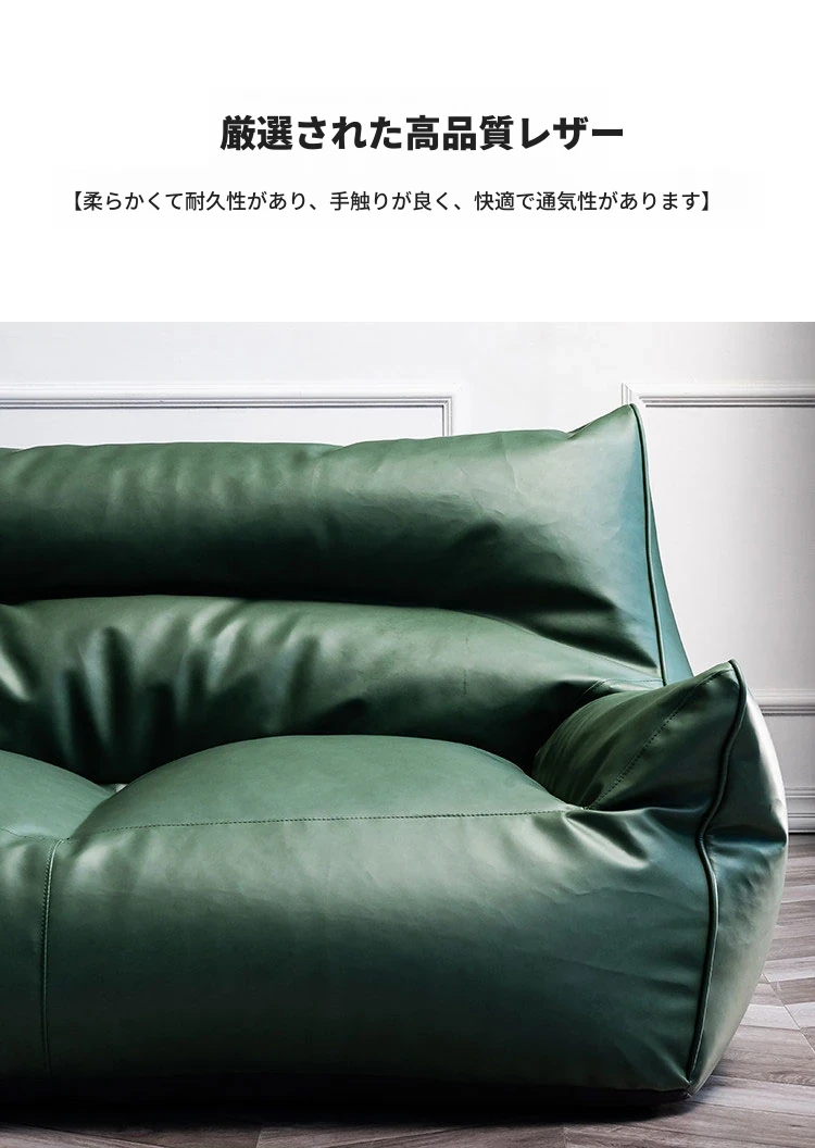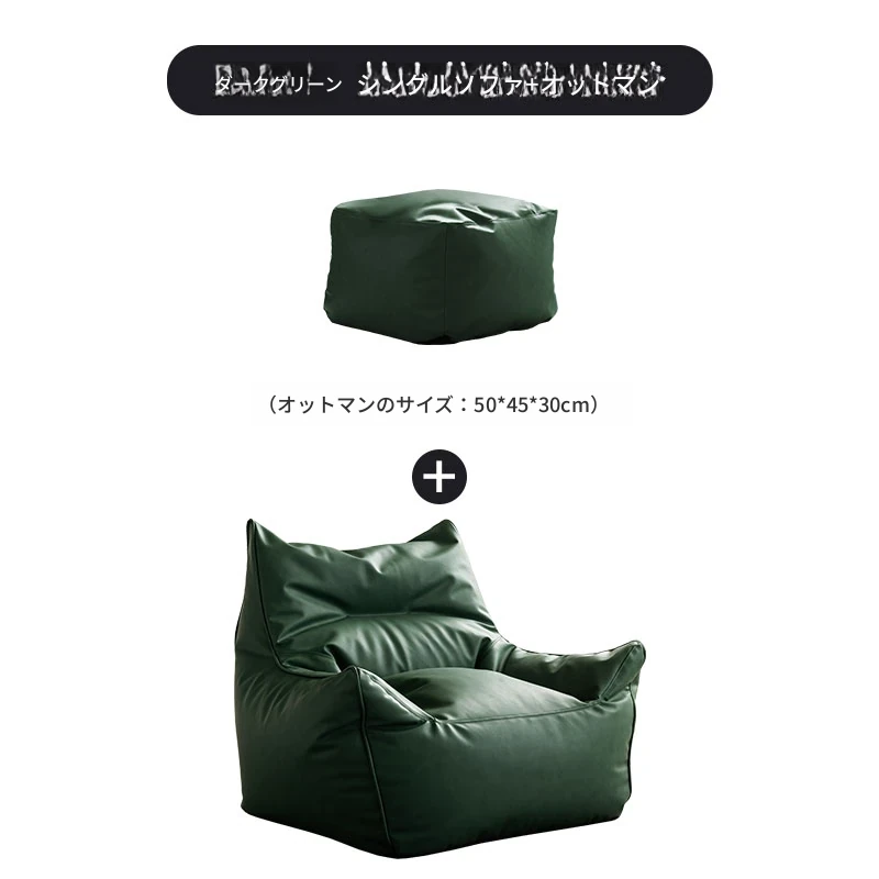 ダークグリーンのソフトレザー一人用+フットスツール【配達】