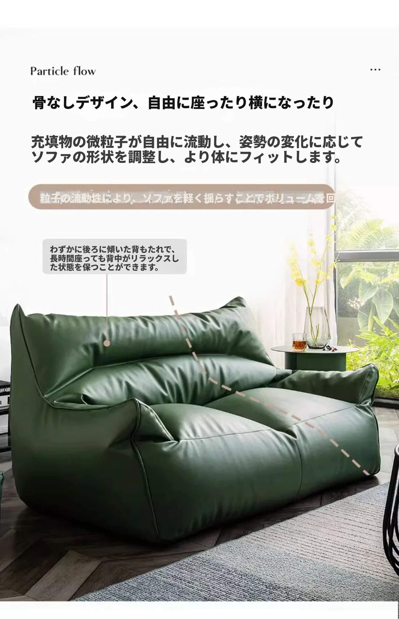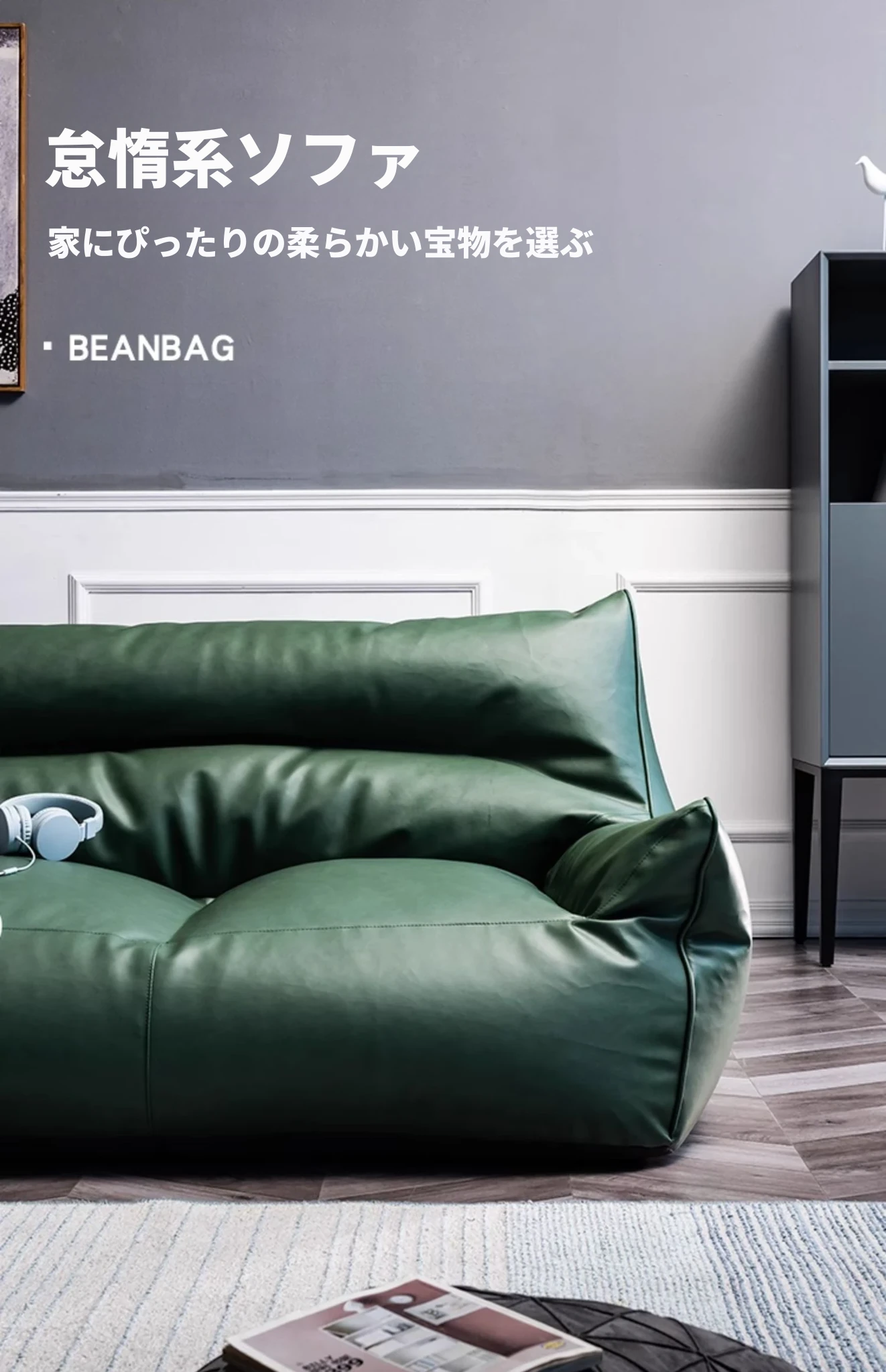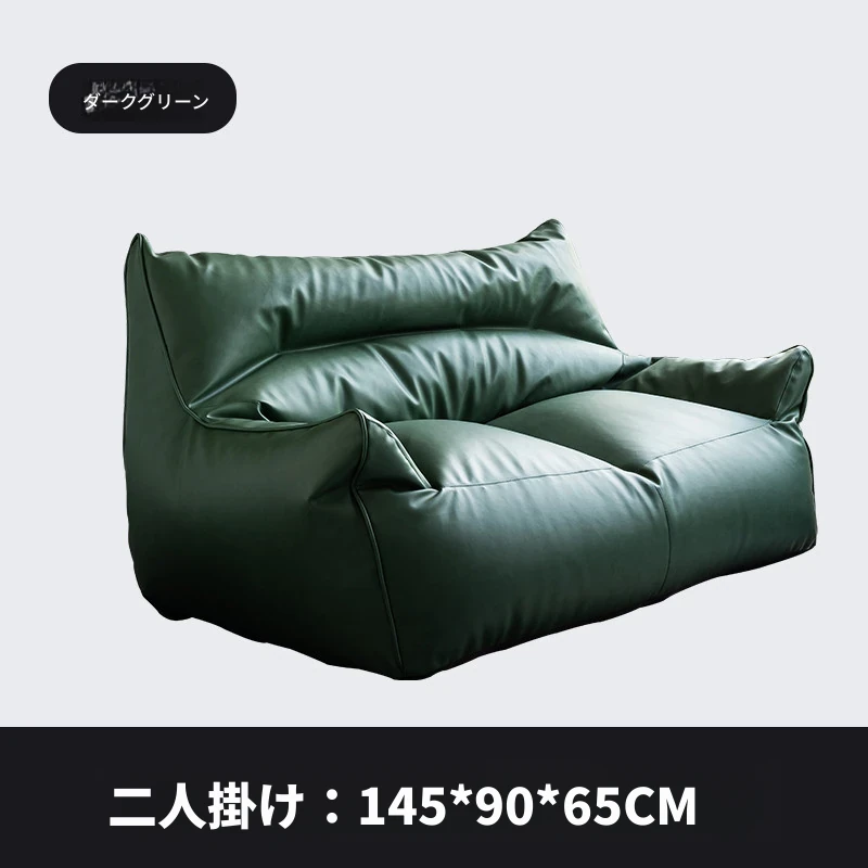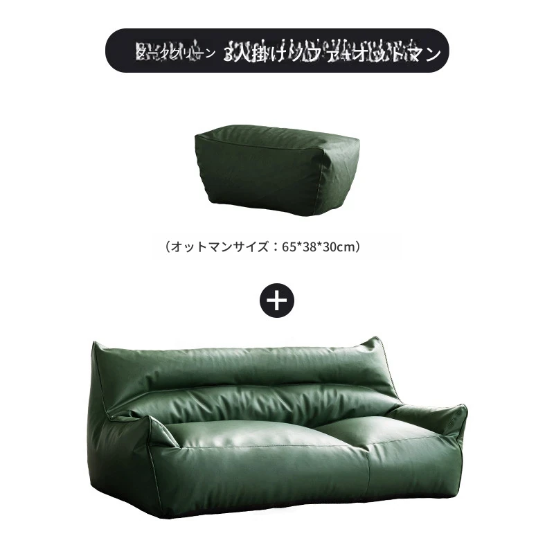 ダークグリーンのソフトレザー二人用+フットスツール【配達】