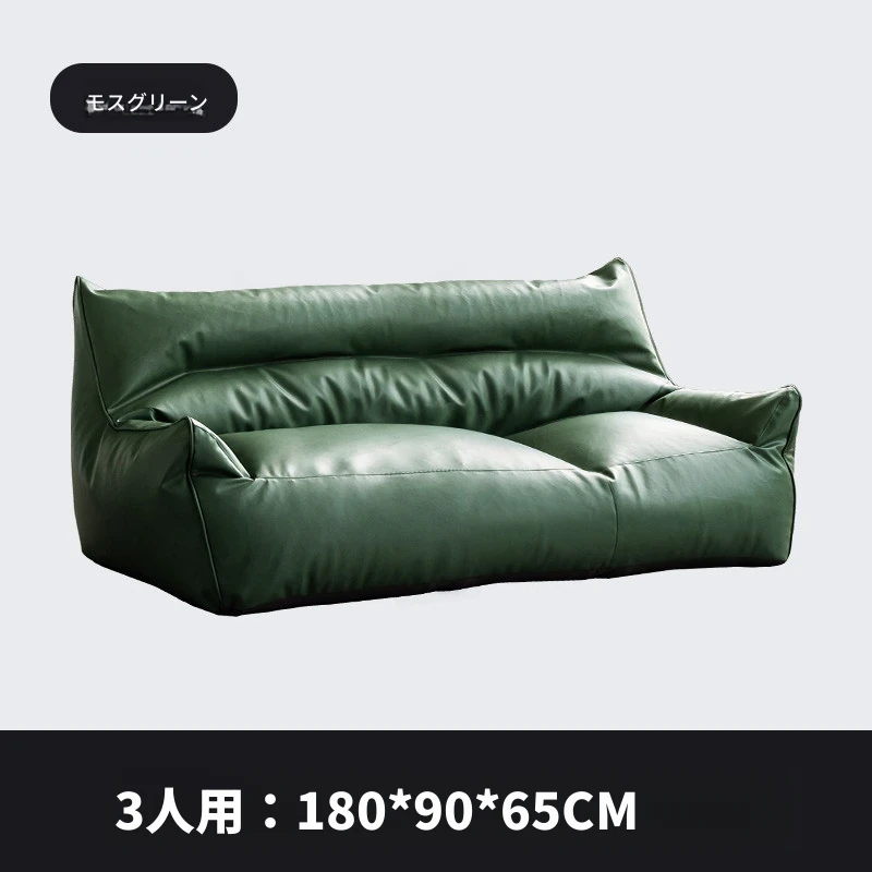 ダークグリーンのソフトレザー三人用+フットスツール【配達】