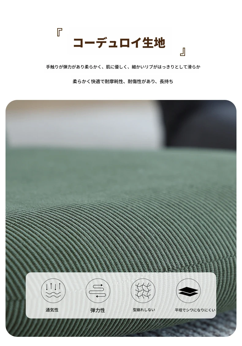 アップグレード版アップルモデル - ダークグリーン - 肌触りの良いコーデュロイ【5段階調整可能・折りたたみ式】 - 洗濯可能