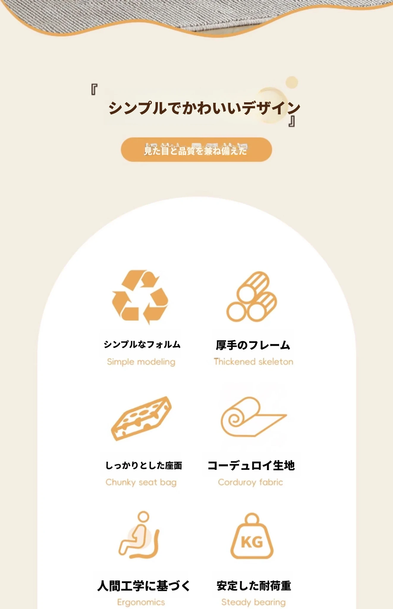 アップグレード版アップルモデル - ミルクホワイト - 肌触りの良いコーデュロイ【5段階調整可能・折りたたみ式】 - 洗濯可能
