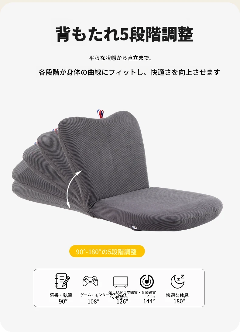 おしゃれで快適なリクライニングソファ!折りたたみ式の畳スタイル、窓辺や寝室、バルコニーにぴったりの一人掛けチェア。寮生活でも活躍する、ベッド上で使える便利なデザイン!