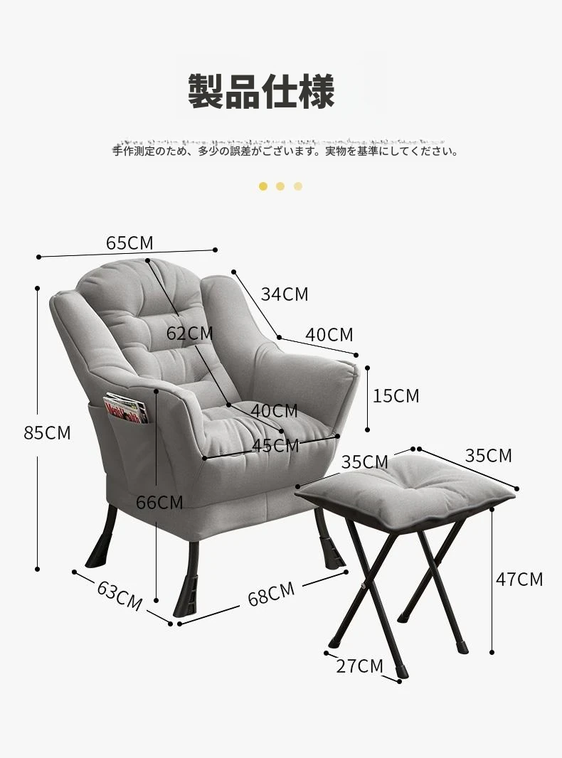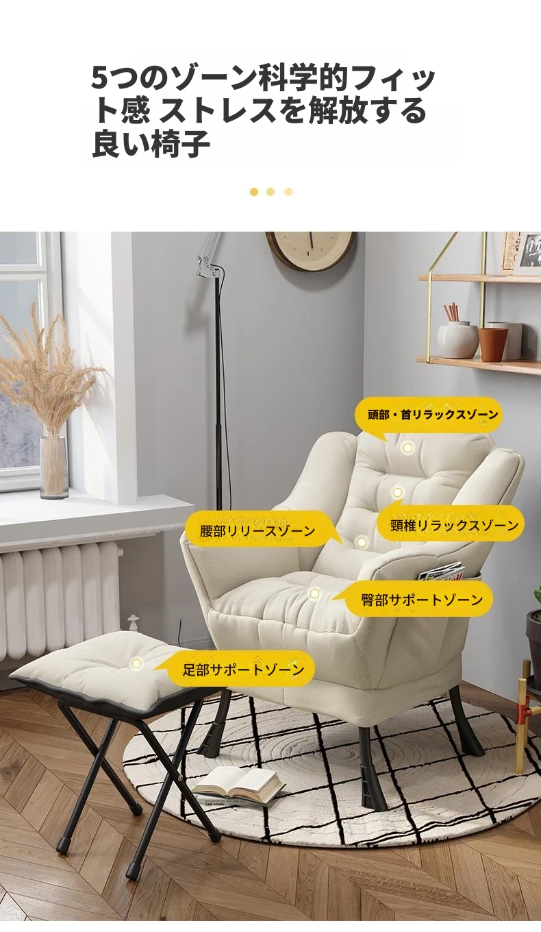 加厚タイプ米白コットンリネン+足置き(取り外し洗濯可)