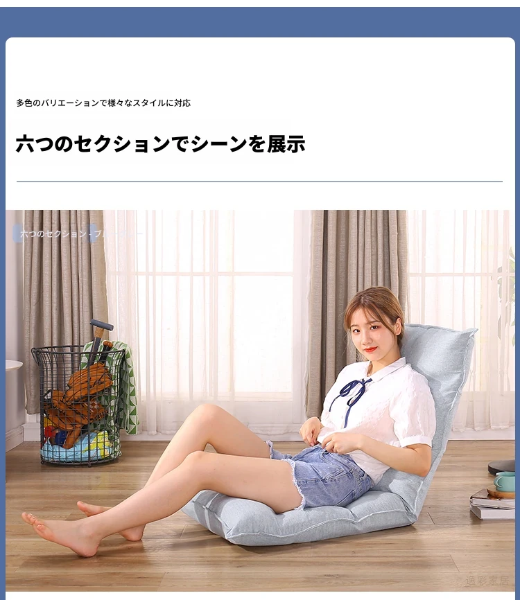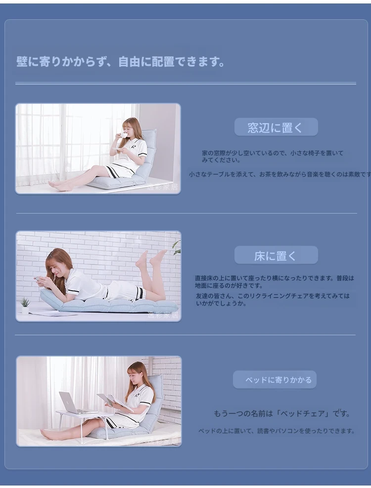 おしゃれで快適!折りたたみ式のリクライニングソファ、シングルサイズのフロアチェア。窓辺や床でリラックスできる、和風の畳スタイル。あなたのお部屋にぴったりのアイテムです!