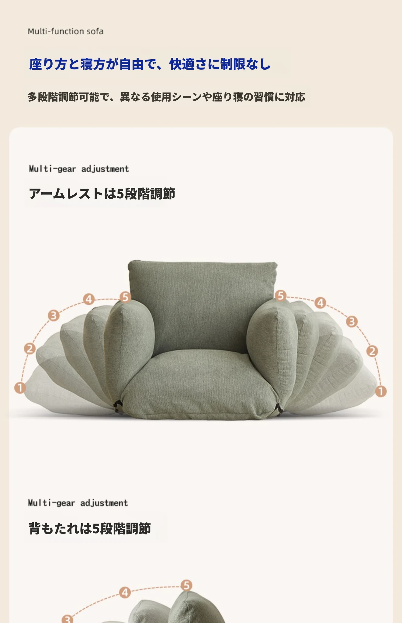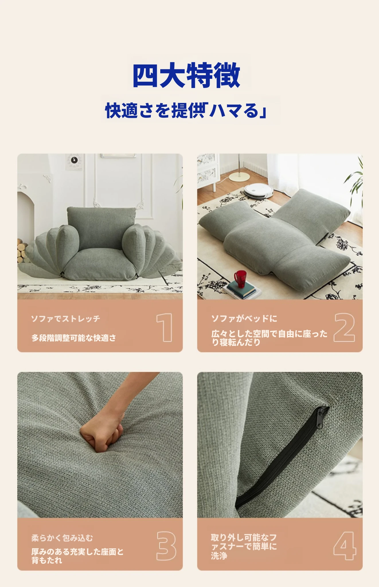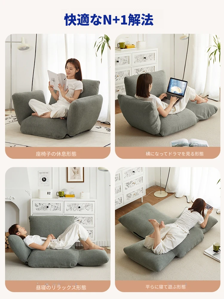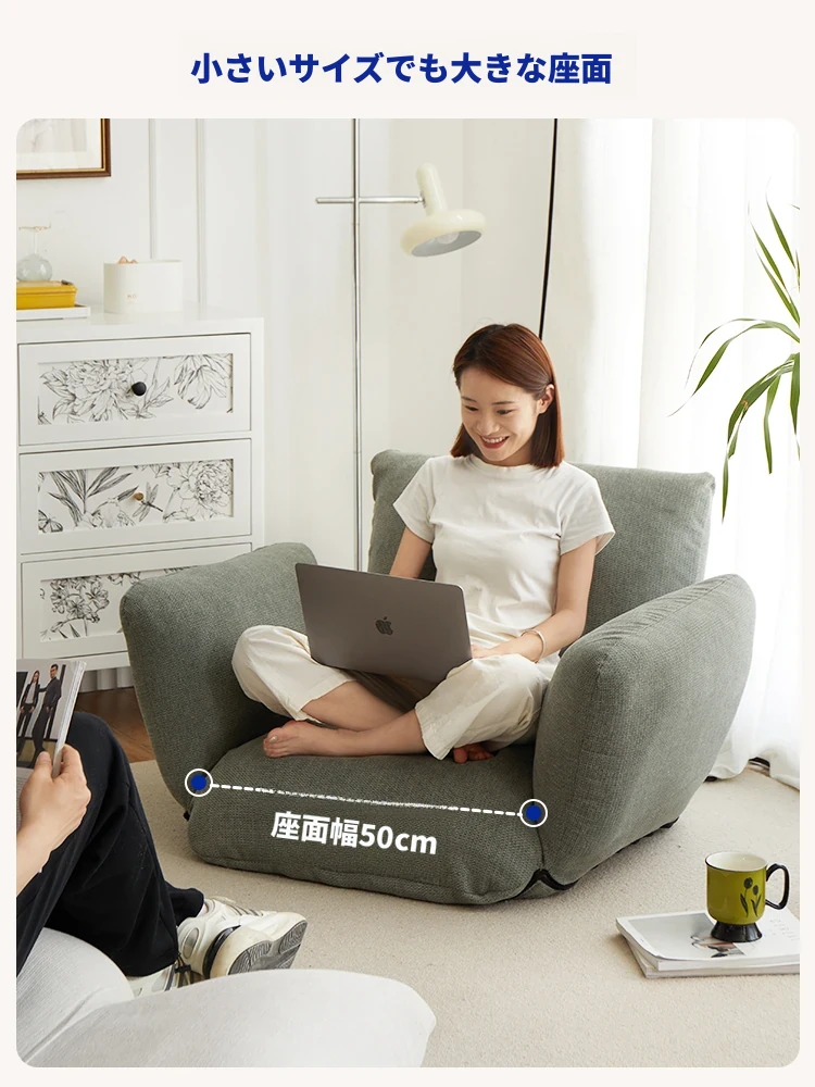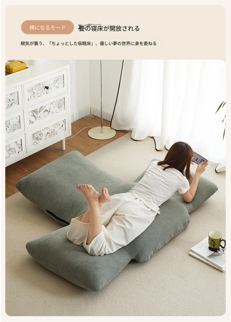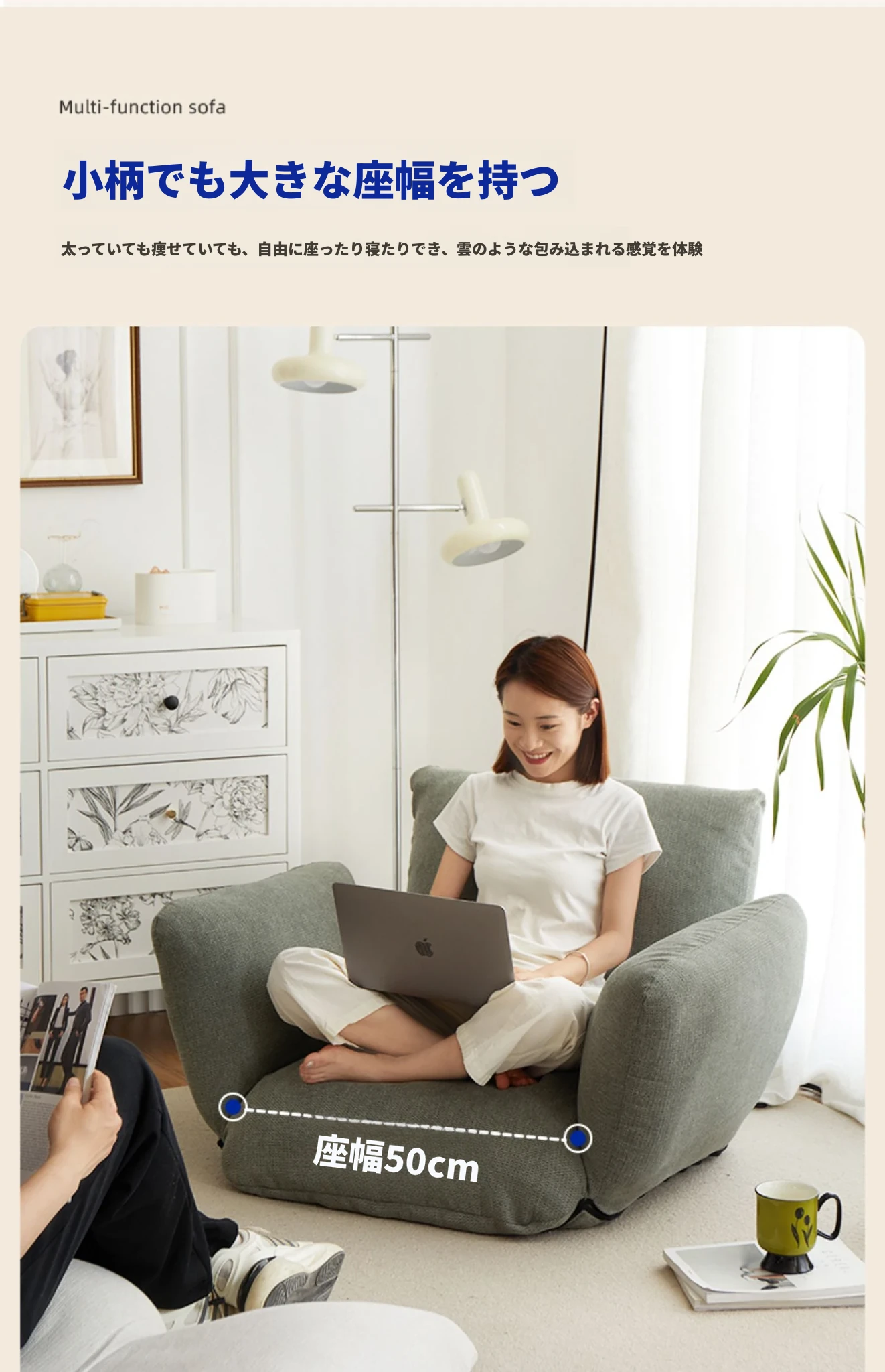 リラックスできるソファ!寝ることもできる一人用ソファ、ベッドサイドの快適な背もたれ椅子。寝室や畳の上でくつろげる小さなソファです。あなたのリラックスタイムを贅沢に演出します!