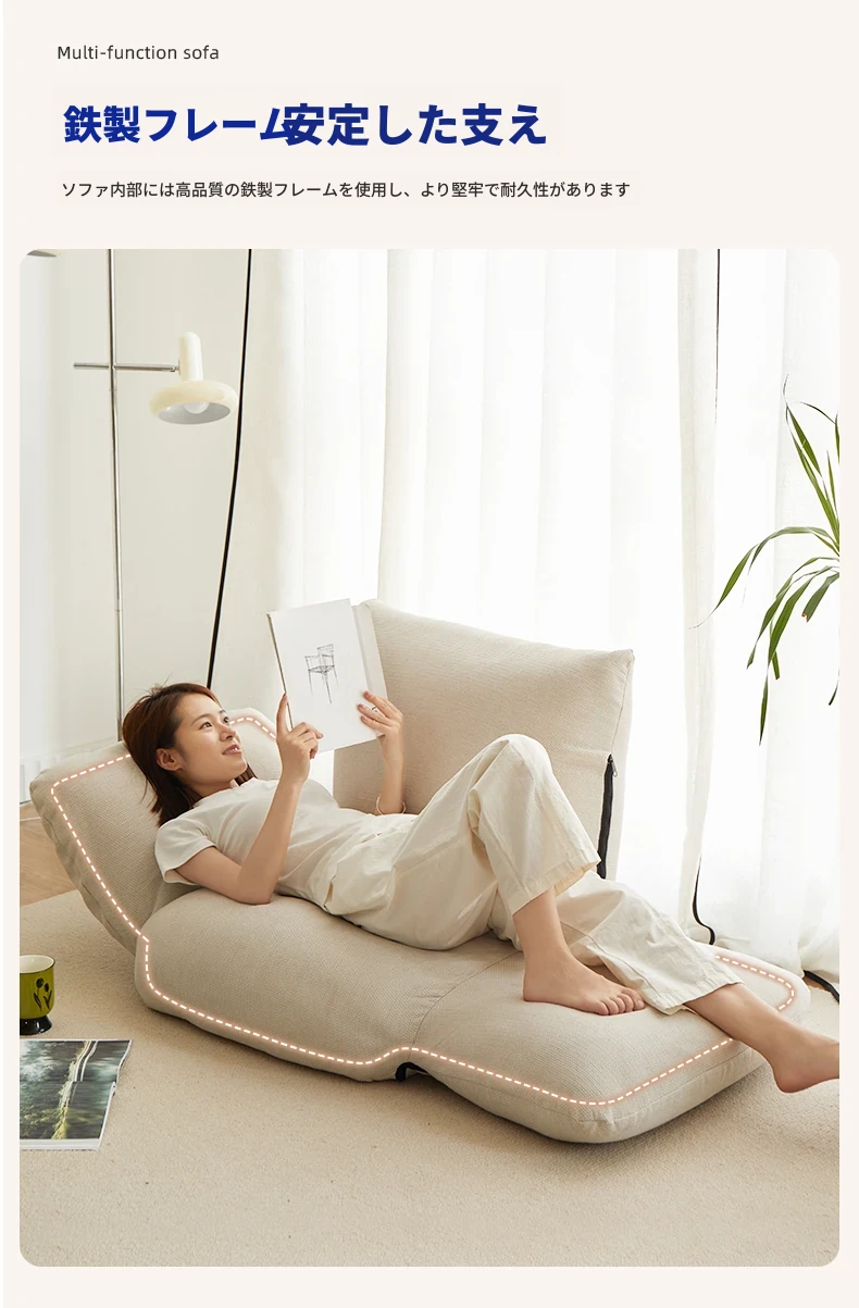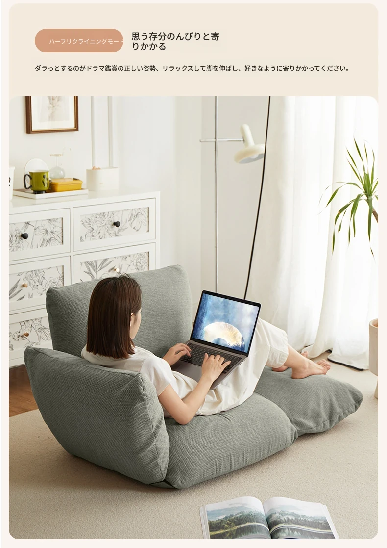 おしゃれな一人用ソファ!リラックスできる畳スタイルのフロアソファ、窓辺やバルコニーにぴったり!折りたたみ式で収納も簡単、快適な背もたれ付きで、あなたのくつろぎ空間を演出します。