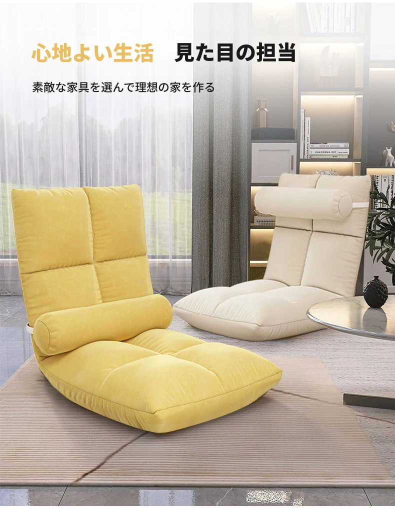 八格コットンリネン大サイズレモンイエロー【腰枕付き】+5段階調整