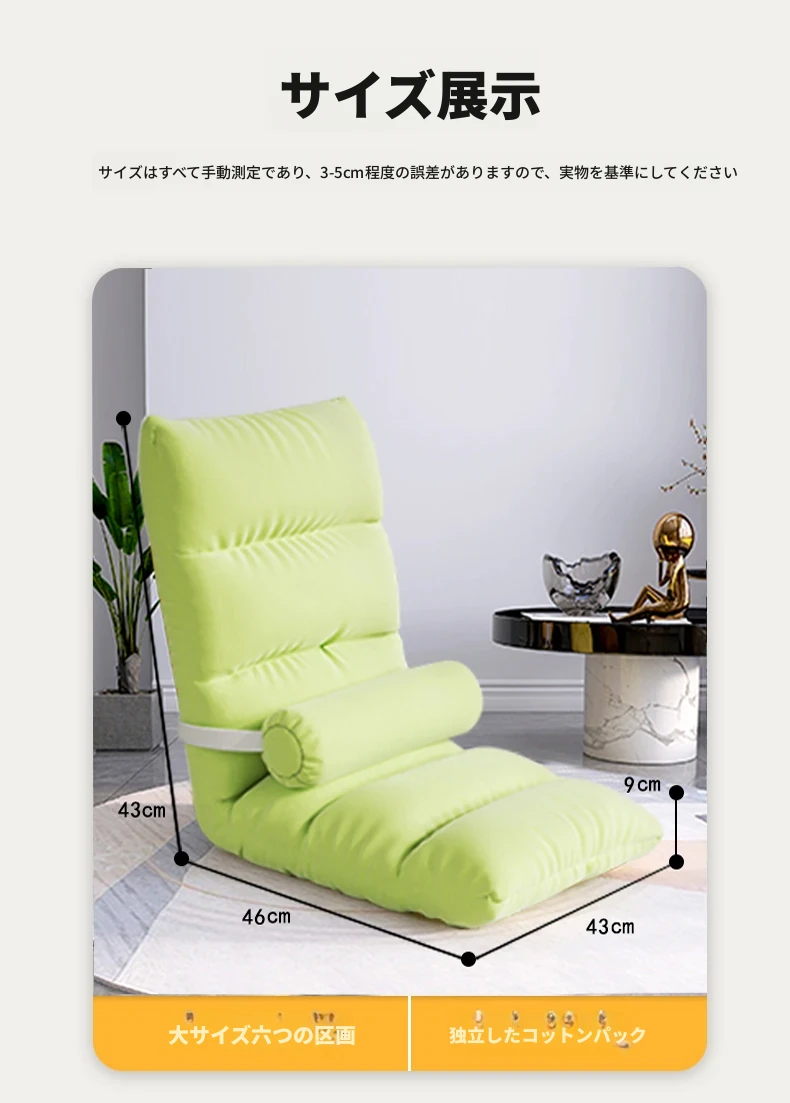 六格コットンリネン大サイズ抹茶グリーン【腰枕付き】+5段階調整