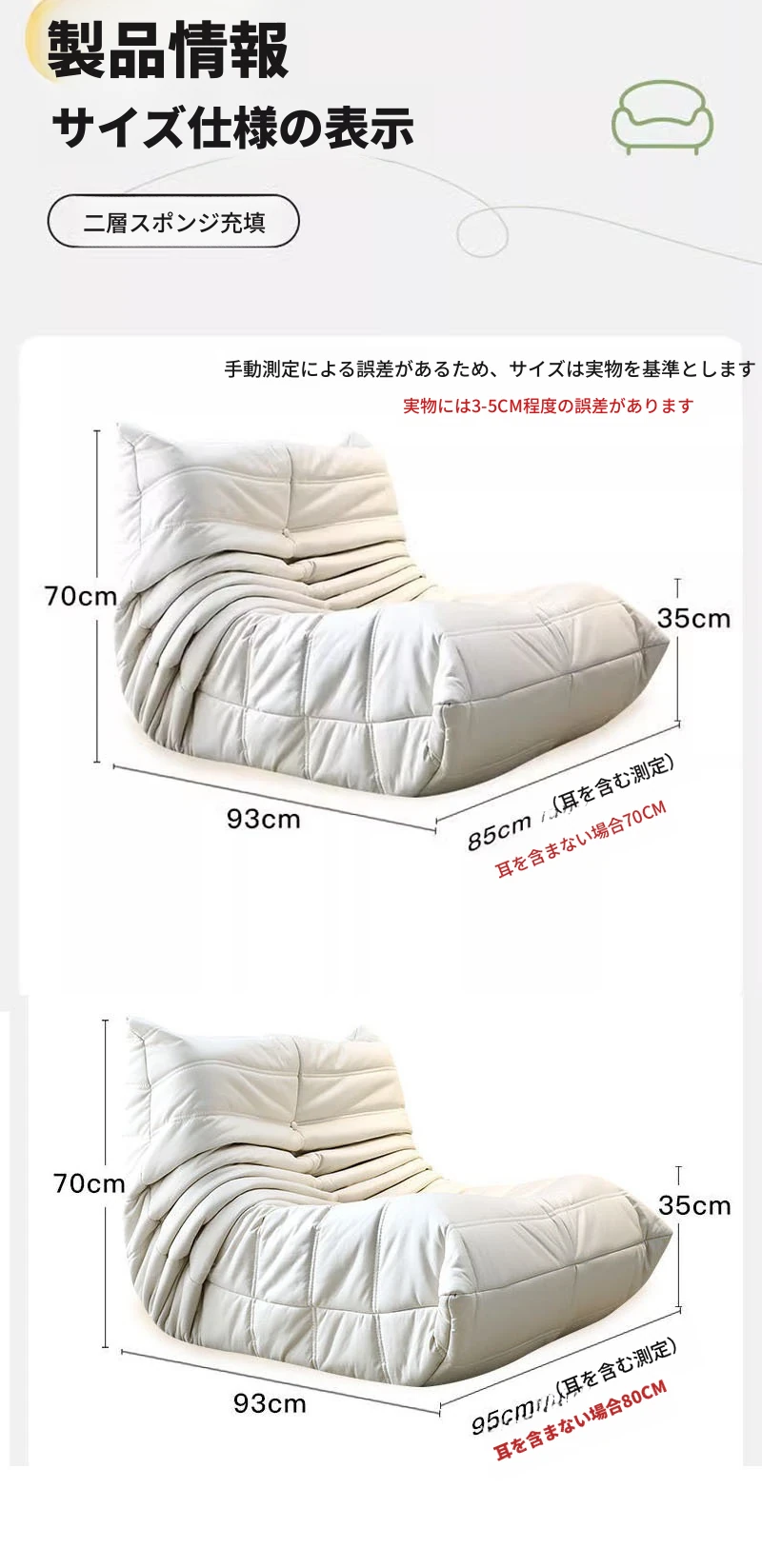 リラックスソファ「トゴ」毛虫デザイン!おしゃれで快適な一人用ソファ、リビングやバルコニーにぴったりな軽奢スタイル。ネットで話題のクリエイティブな椅子で、くつろぎのひとときを楽しもう!