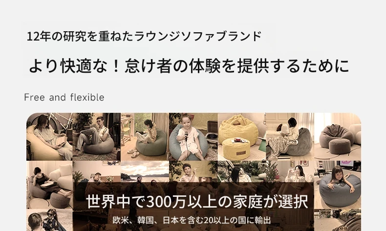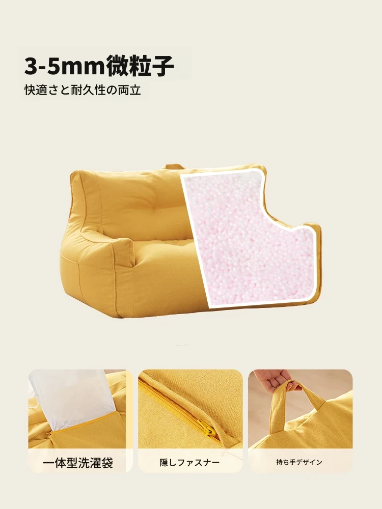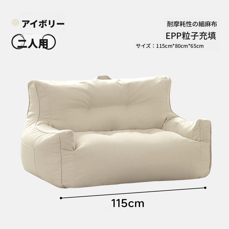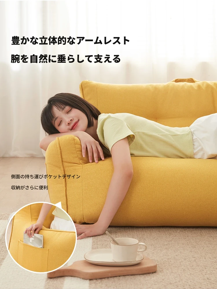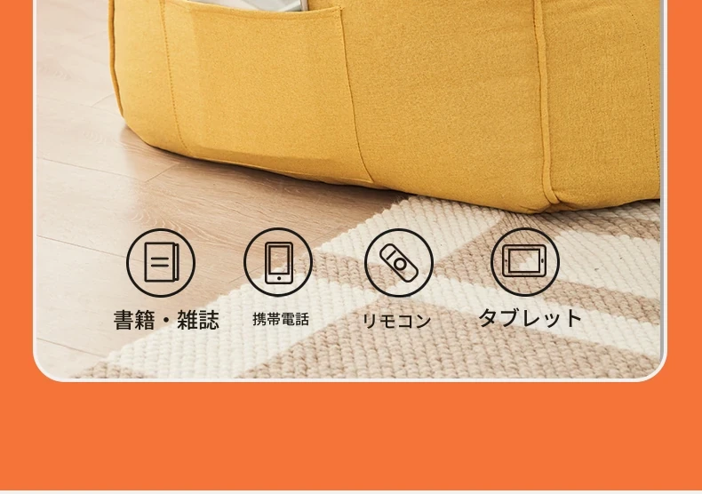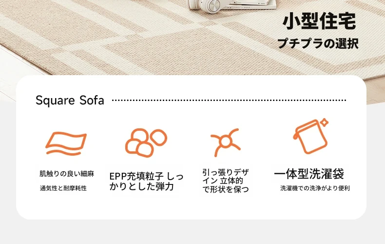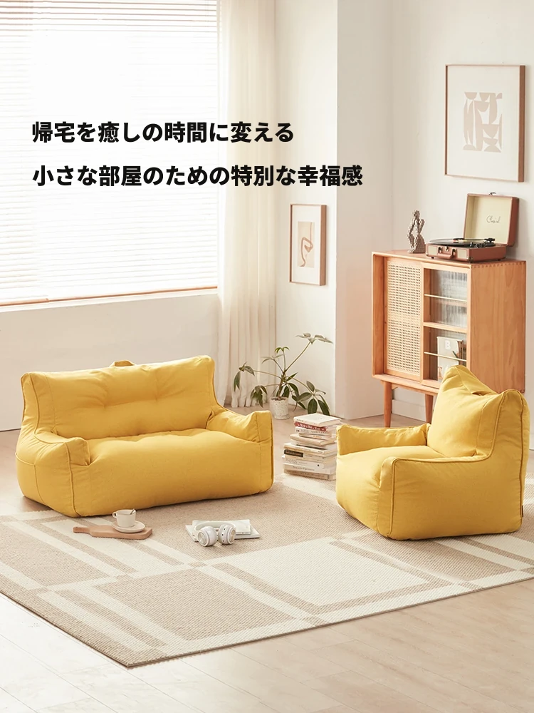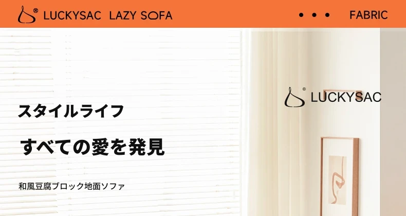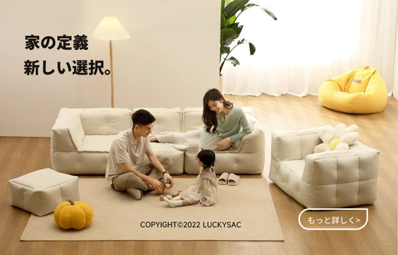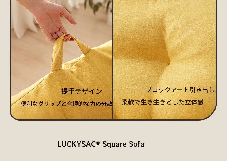 ラッキーサックの楽々ソファ!和風豆腐ブロックスタイルのフロアソファ、リビングに最適。寝転んでも快適な一人用・二人用のコンパクトソファで、心地よいひとときをお楽しみください!