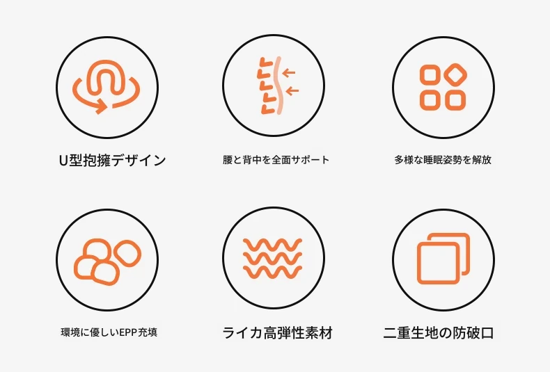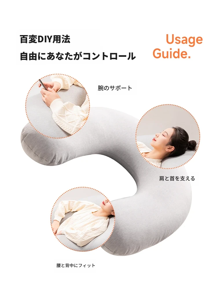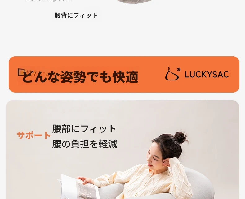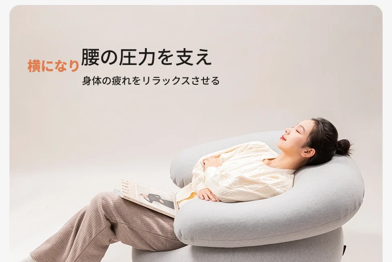 ラッキーサック・ラクラクソファーボールクッション!多機能U字型抱き枕で、リビングやベッドでのリラックスタイムをサポート。腰をしっかり支えて快適な姿勢を実現。あなたのくつろぎ空間にぴったりのアイテムです!