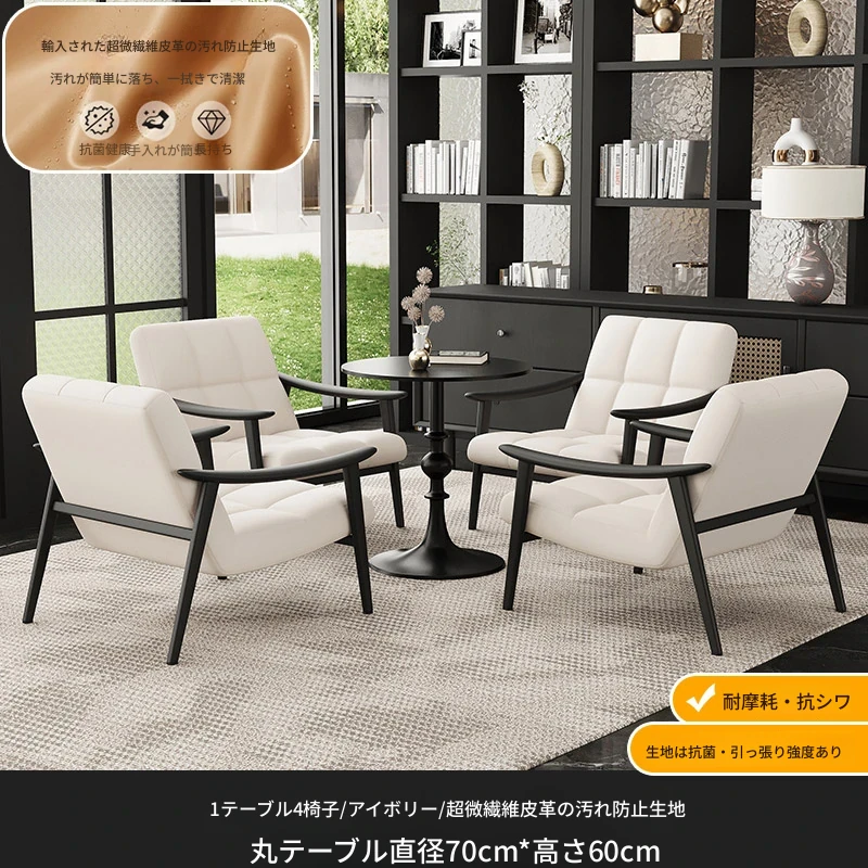 1テーブル4椅子【アイボリー/超繊維皮革+丸テーブル70*60】