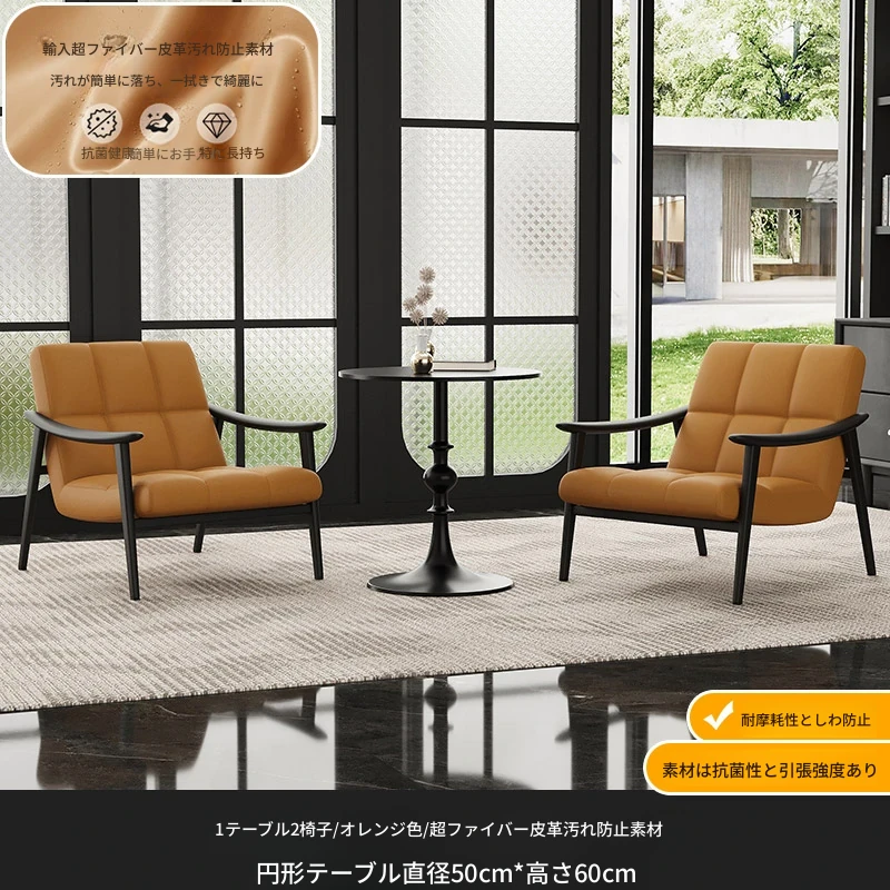 1テーブル2椅子【オレンジ/超繊維皮革+丸テーブル50*60】