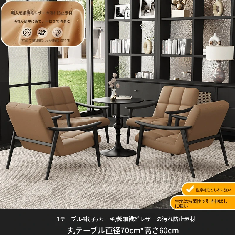 1テーブル4椅子【カーキ/超繊維皮革+丸テーブル70*60】