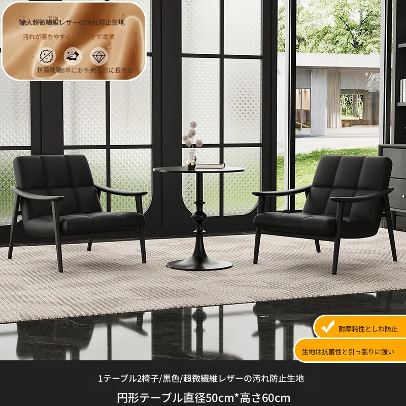 1テーブル2椅子【ブラック/超繊維皮革+丸テーブル50*60】