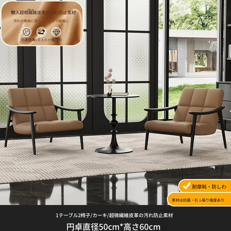 1テーブル2椅子【カーキ/超繊維皮革+丸テーブル50*60】
