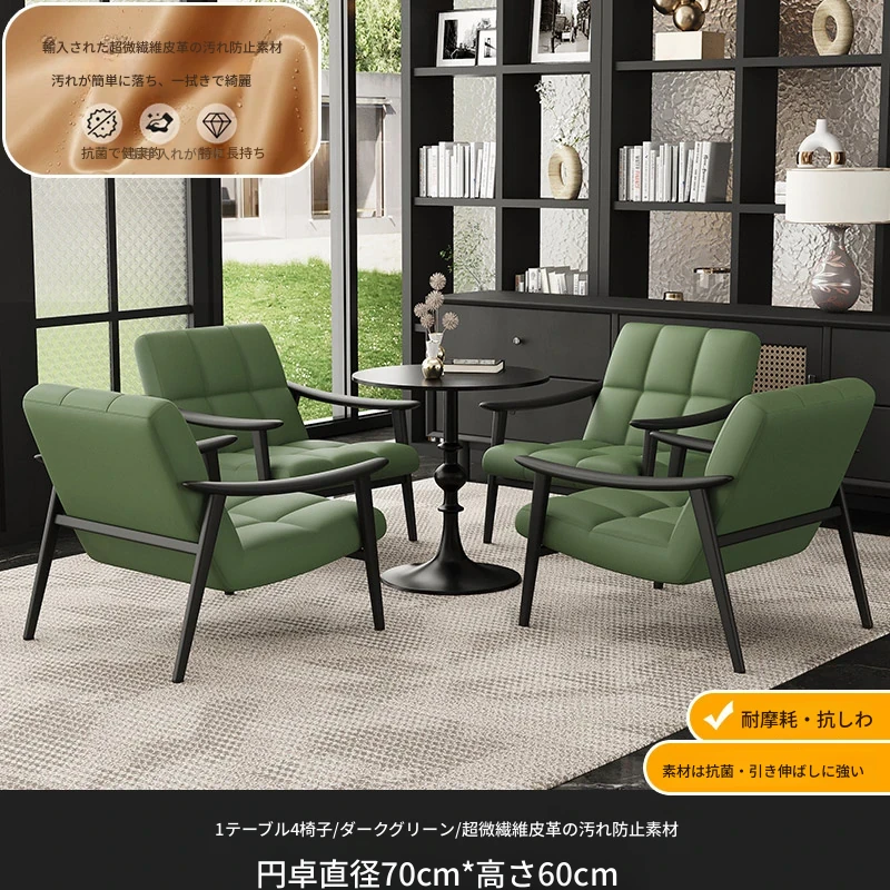 1テーブル4椅子【ダークグリーン/超繊維皮革+丸テーブル70*60】
