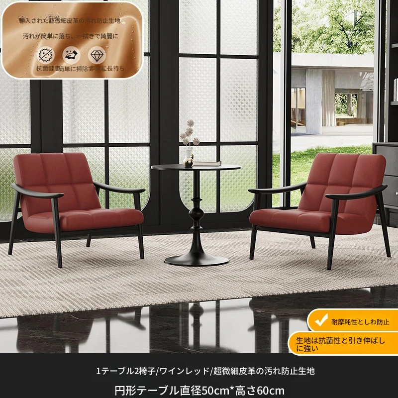 1テーブル2椅子【ワインレッド/超繊維皮革+丸テーブル50*60】