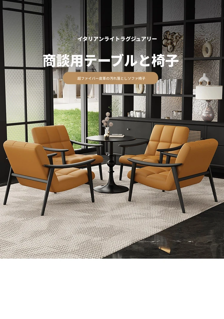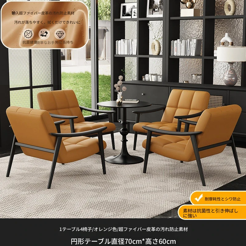 1テーブル4椅子【オレンジ/超繊維皮革+丸テーブル70*60】