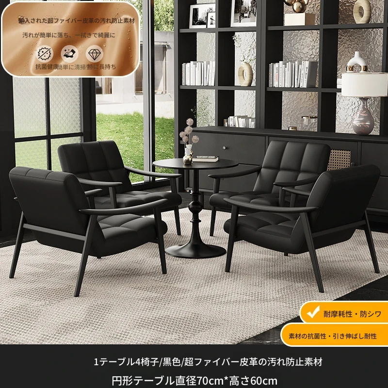 1テーブル4椅子【ブラック/超繊維皮革+丸テーブル70*60】