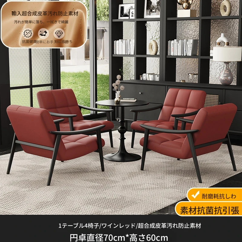 1テーブル4椅子【ワインレッド/超繊維皮革+丸テーブル70*60】