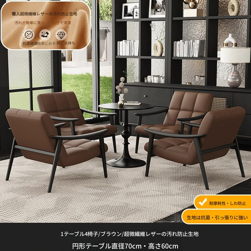 1テーブル4椅子【ブラウン/超繊維皮革+丸テーブル70*60】