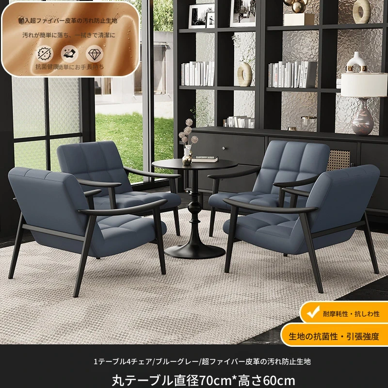 1テーブル4椅子【ブルーグレー/超繊維皮革+丸テーブル70*60】