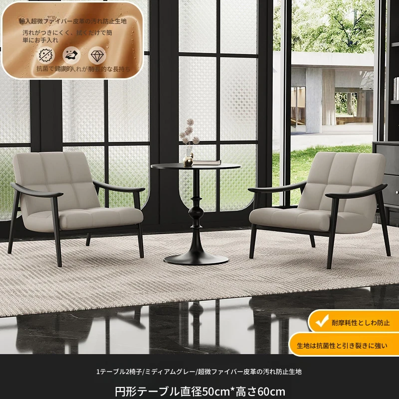 1テーブル2椅子【ミディアムグレー/超繊維皮革+丸テーブル50*60】