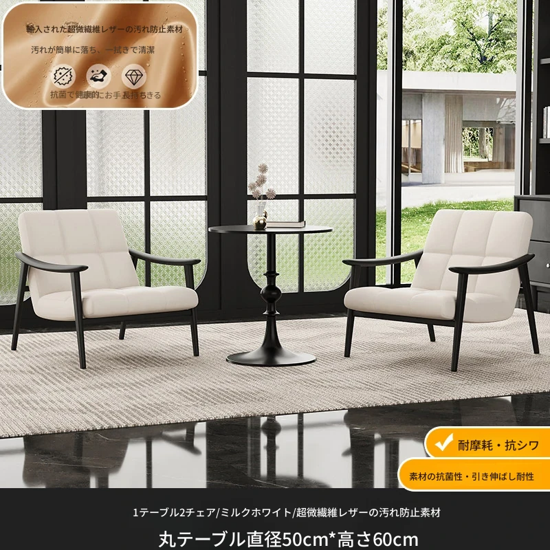 1テーブル2椅子【アイボリー/超繊維皮革+丸テーブル50*60】