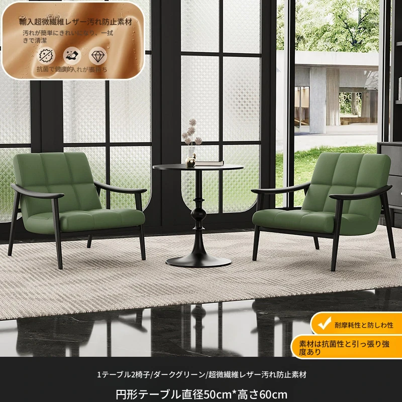 1テーブル2椅子【ダークグリーン/超繊維皮革+丸テーブル50*60】