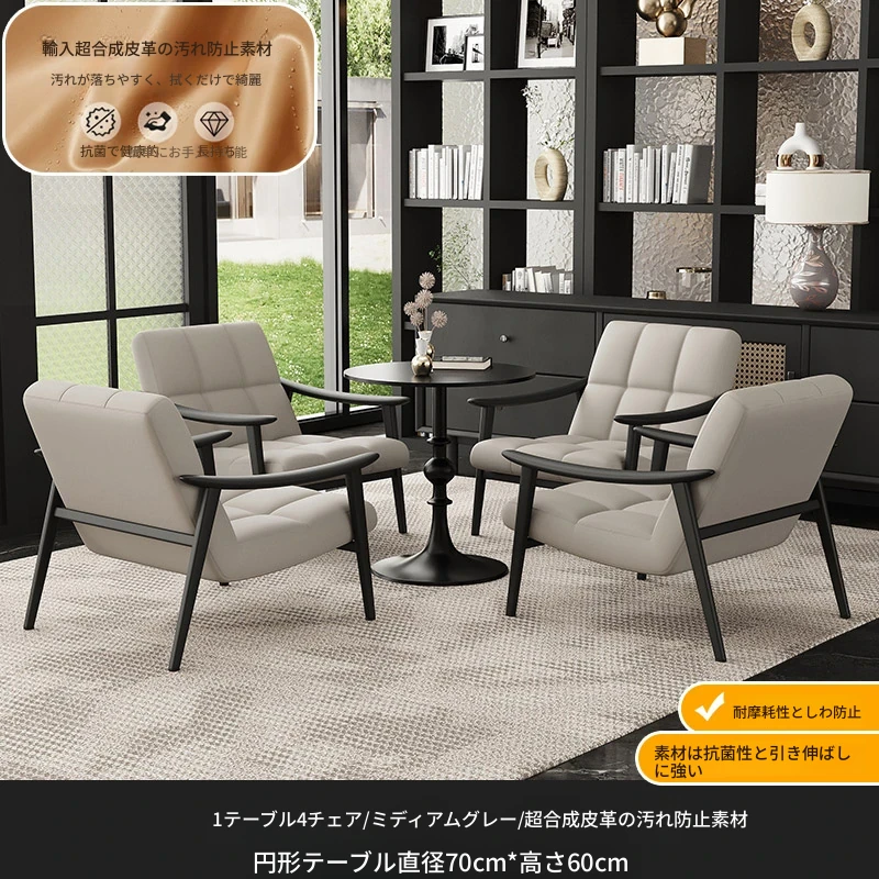 1テーブル4椅子【ミディアムグレー/超繊維皮革+丸テーブル70*60】
