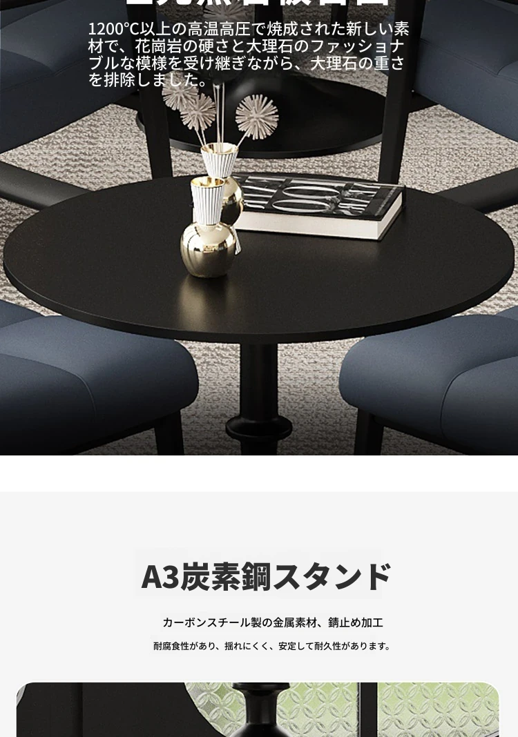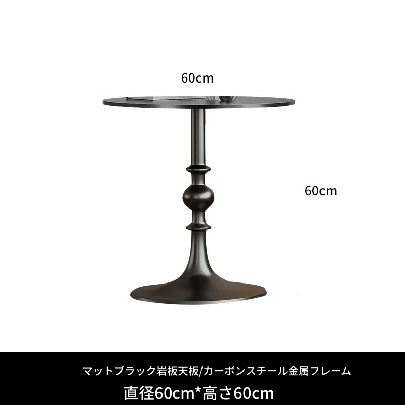 丸テーブル:60*60cm【マットブラックストーン天板】