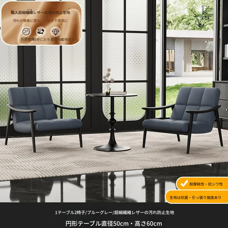 1テーブル2椅子【ブルーグレー/超繊維皮革+丸テーブル50*60】