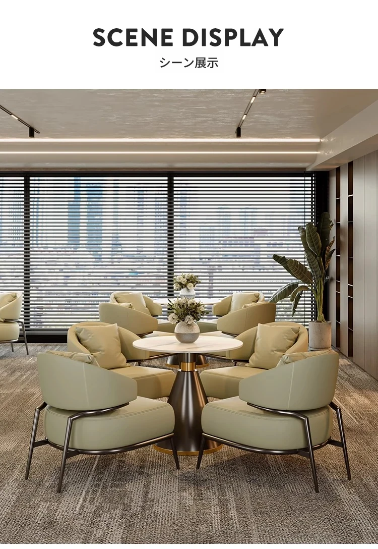 ホテルの休憩エリアに最適!ラグジュアリーな接客デスク&チェアセット - 売り場や会議にぴったりな一卓四椅子!カフェにもおすすめのソファチェアで、くつろぎのひとときを提供します。