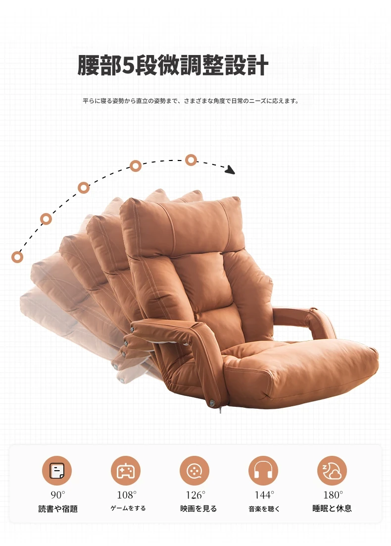 シンプルでおしゃれな和風タタミスタイルの一人掛けリクライニングチェア!バルコニーや窓辺にぴったり、折りたたみ可能で昼寝にも最適。リラックスしたい時に最適な、快適なラウンジソファです!