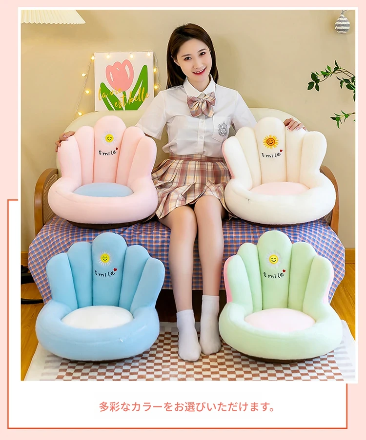 カラフルなキャラクターのリラックスソファ!バルコニーやリビングにぴったりの小型チェア。快適なクッションと背もたれで、読書やくつろぎタイムに最適。子供にも大人気のデザインで、お部屋を楽しく彩ります!