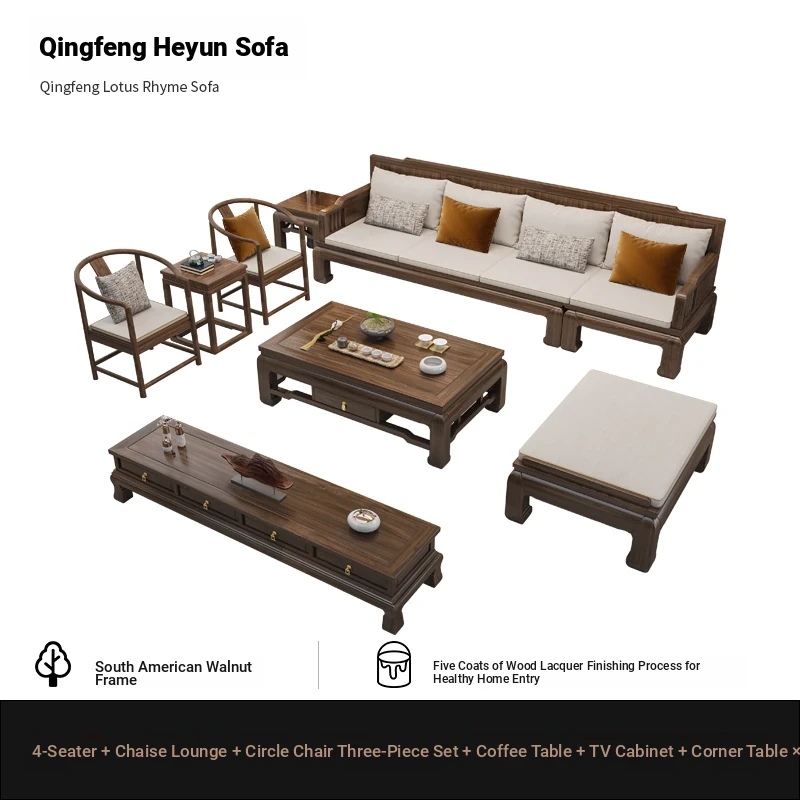 4-person + imperial concubine + tea table + TV cabinet [FAS Walnut]]