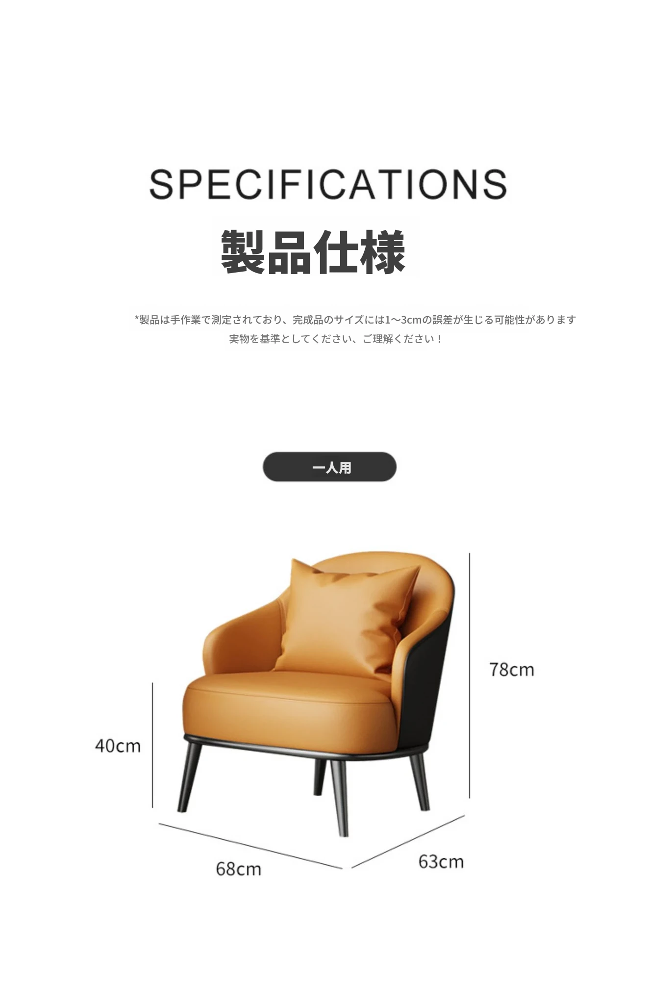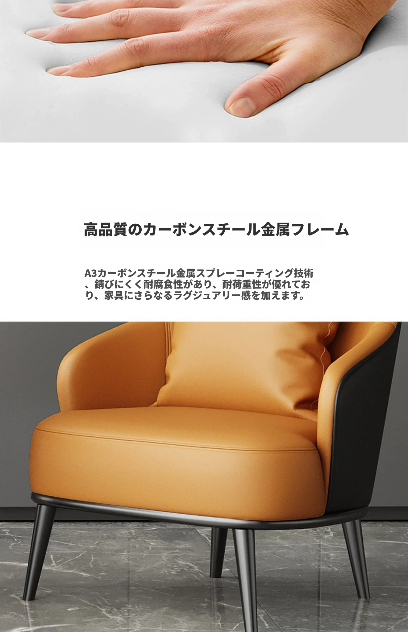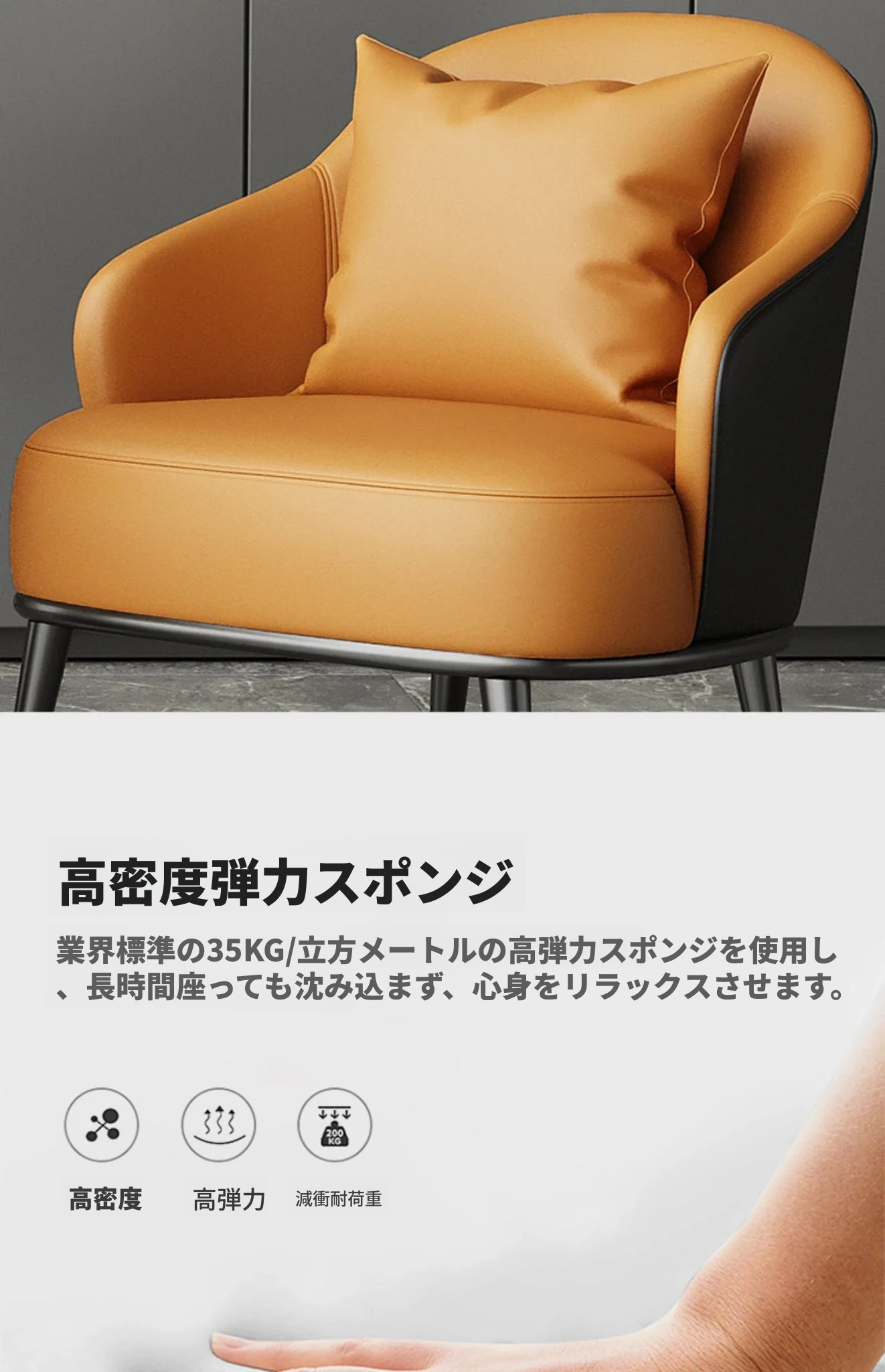 オレンジ+黒色/合成皮革/ホワイトアッシュ椅子脚