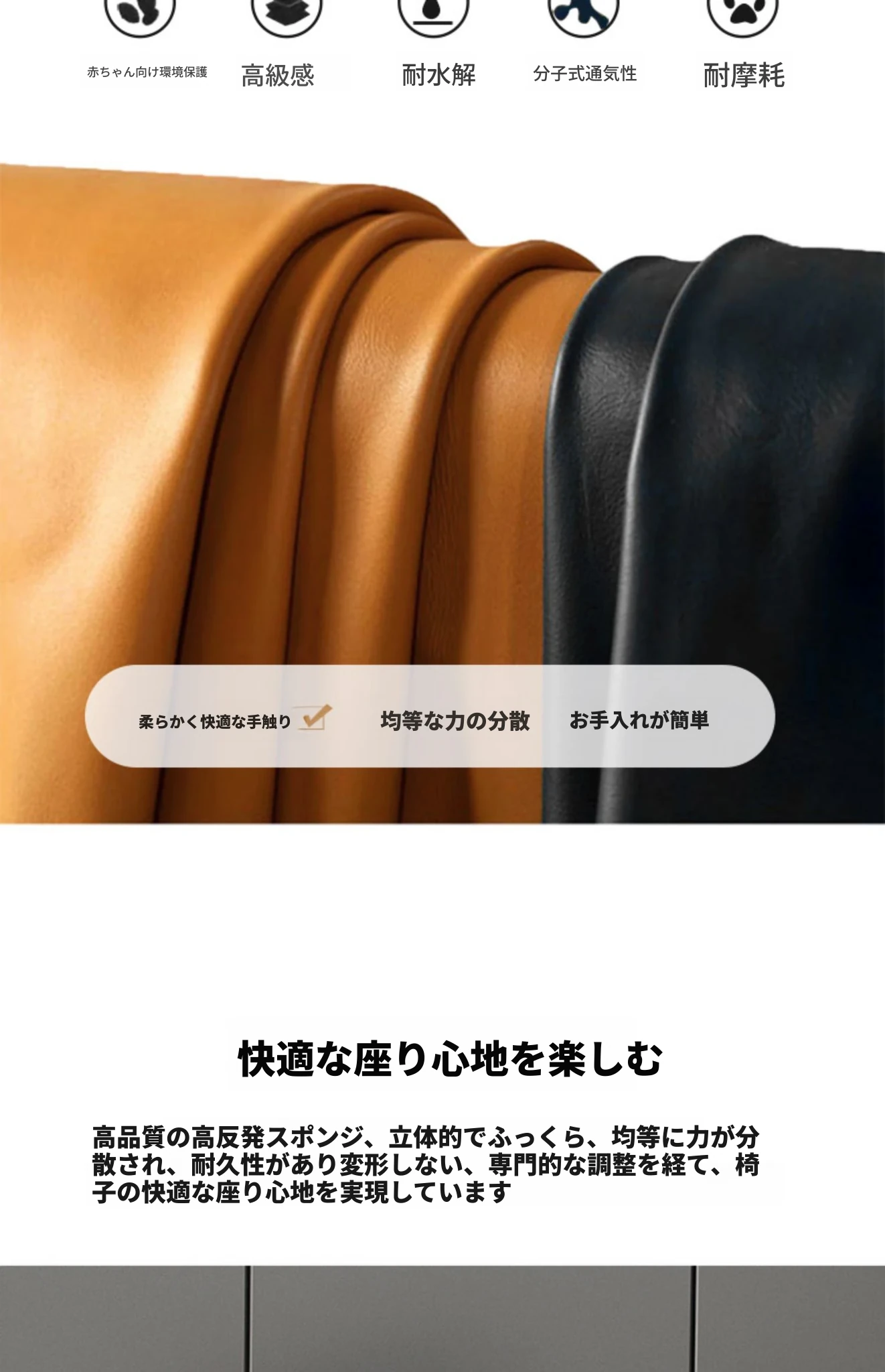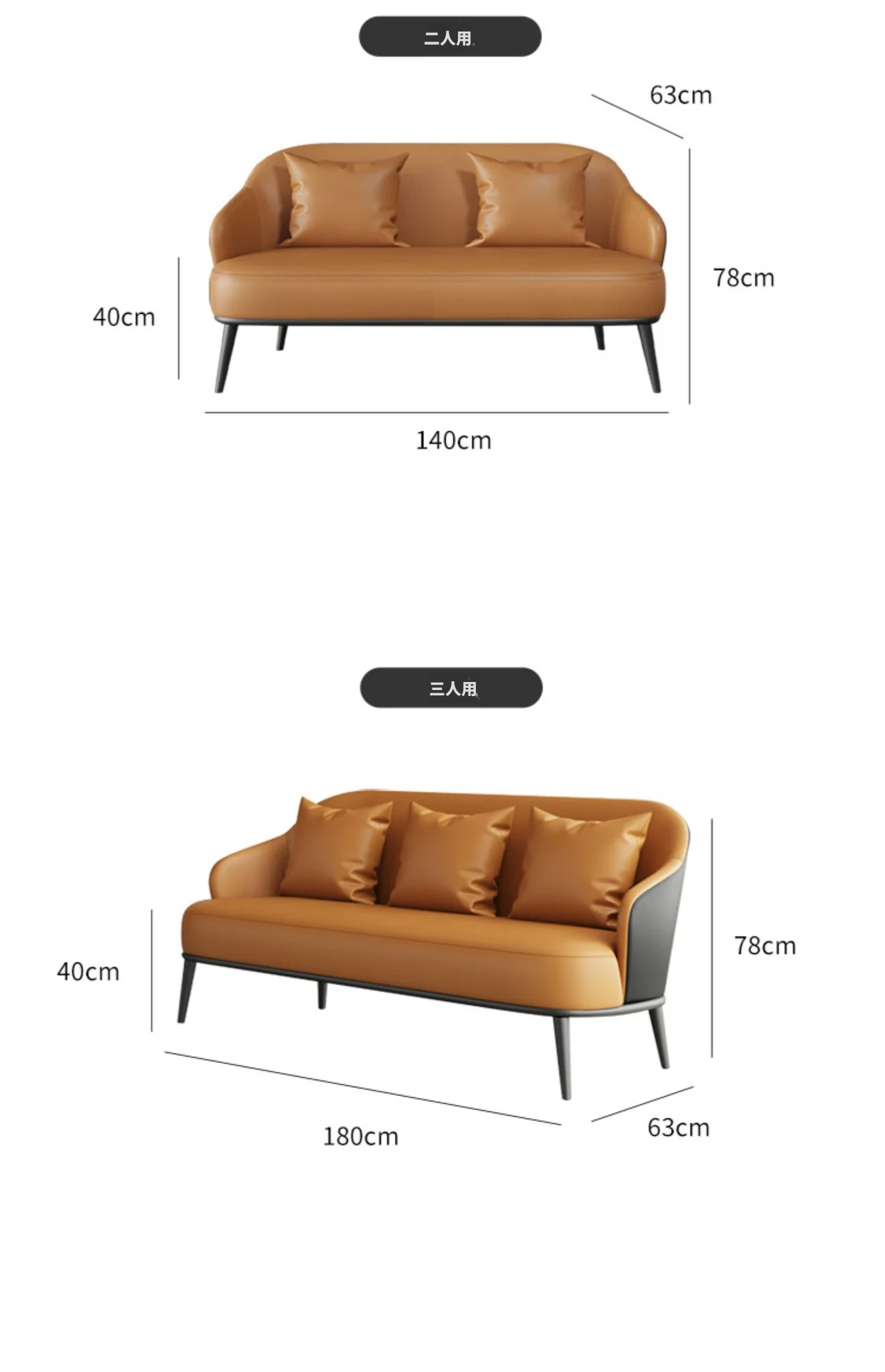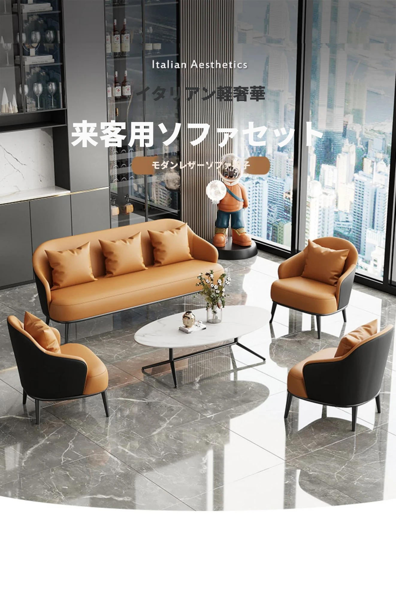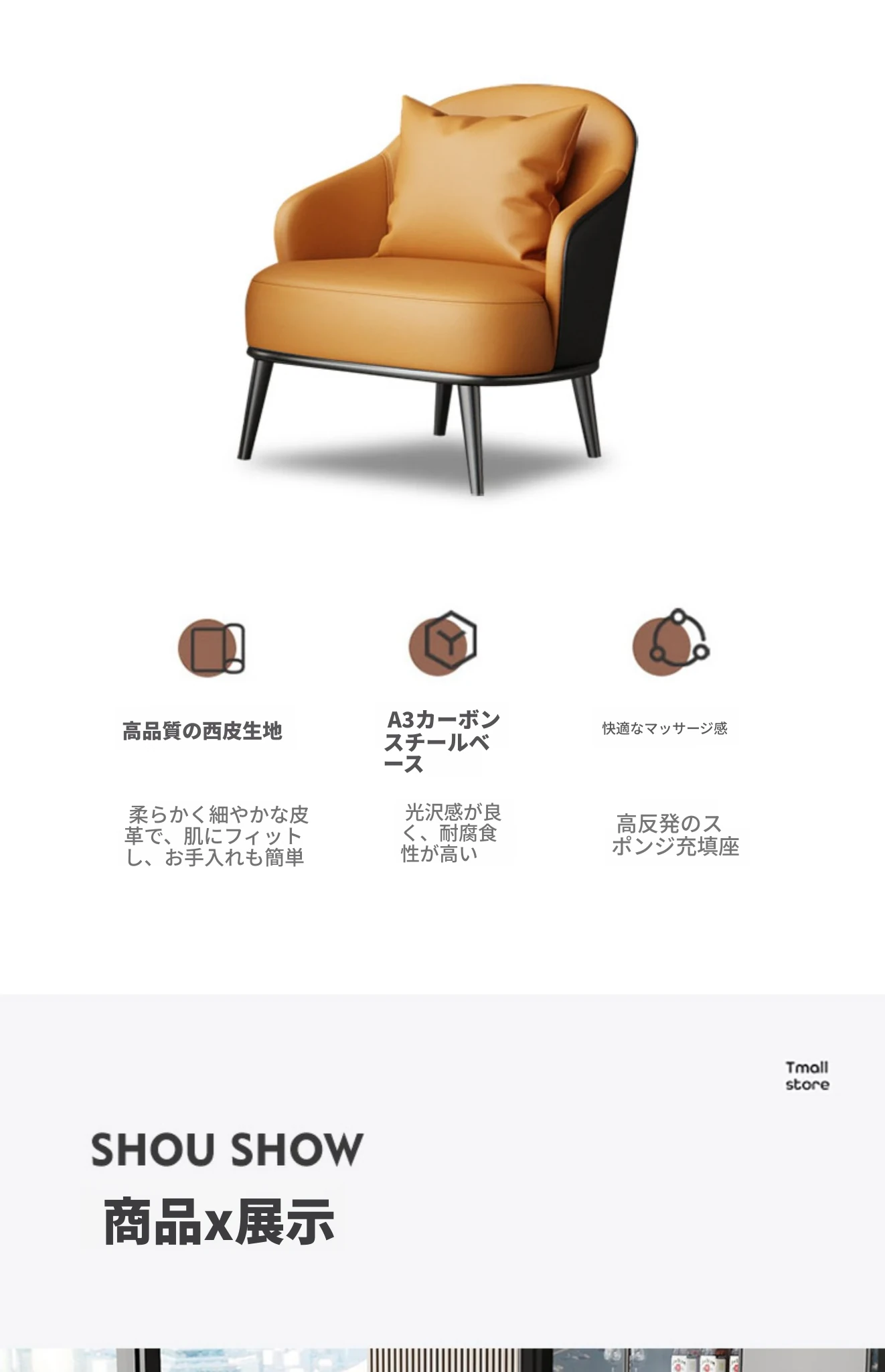 オレンジ+黒色/合成皮革/ホワイトアッシュ椅子脚