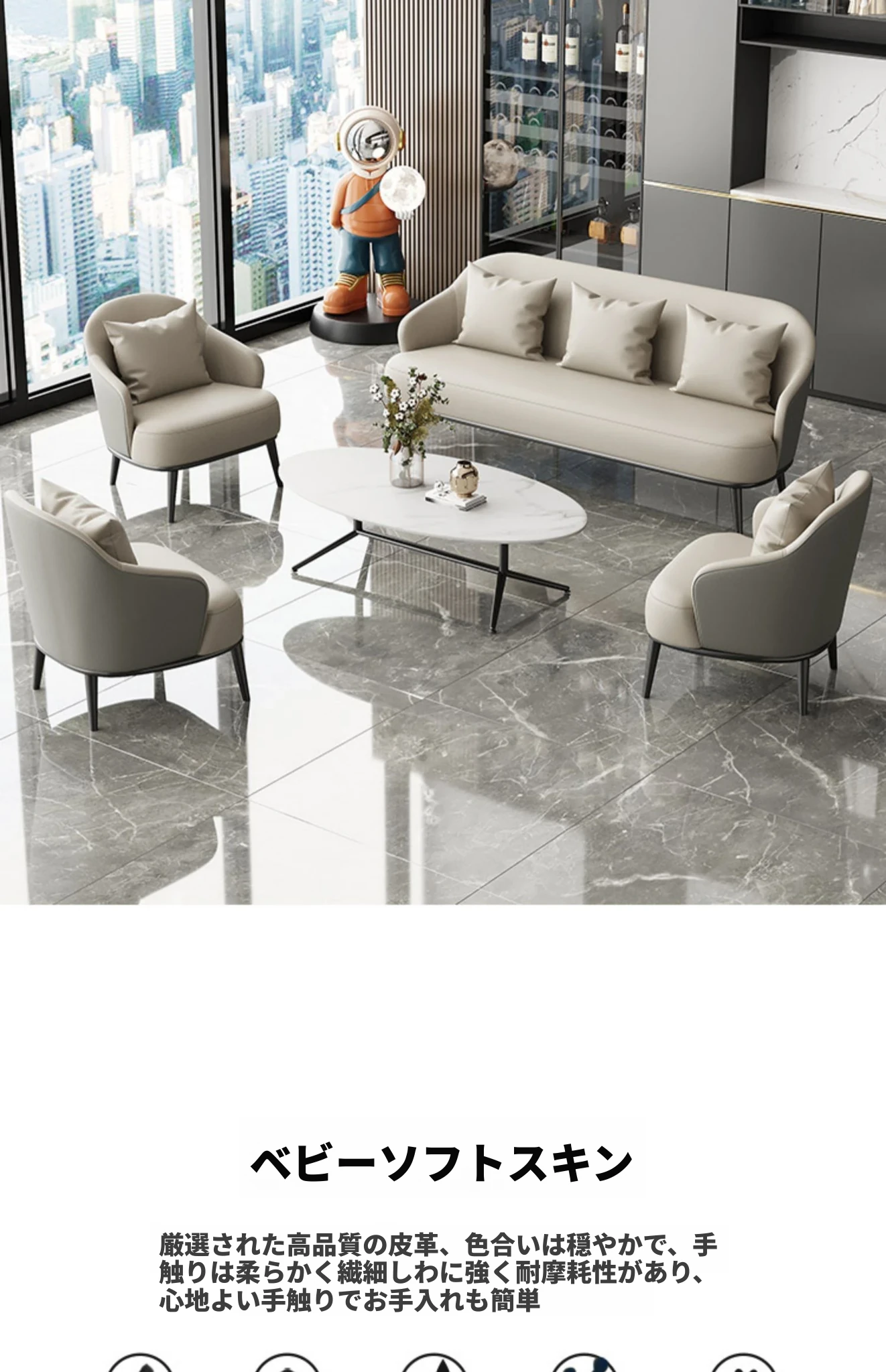ミディアムグレー+灰色/合成皮革/ホワイトアッシュ椅子脚