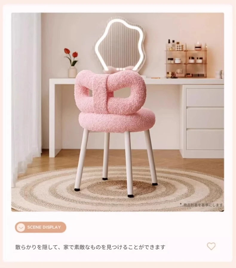 【云感坐垫✨安定強化】プリンセスピンクのラビットファー蝶椅子