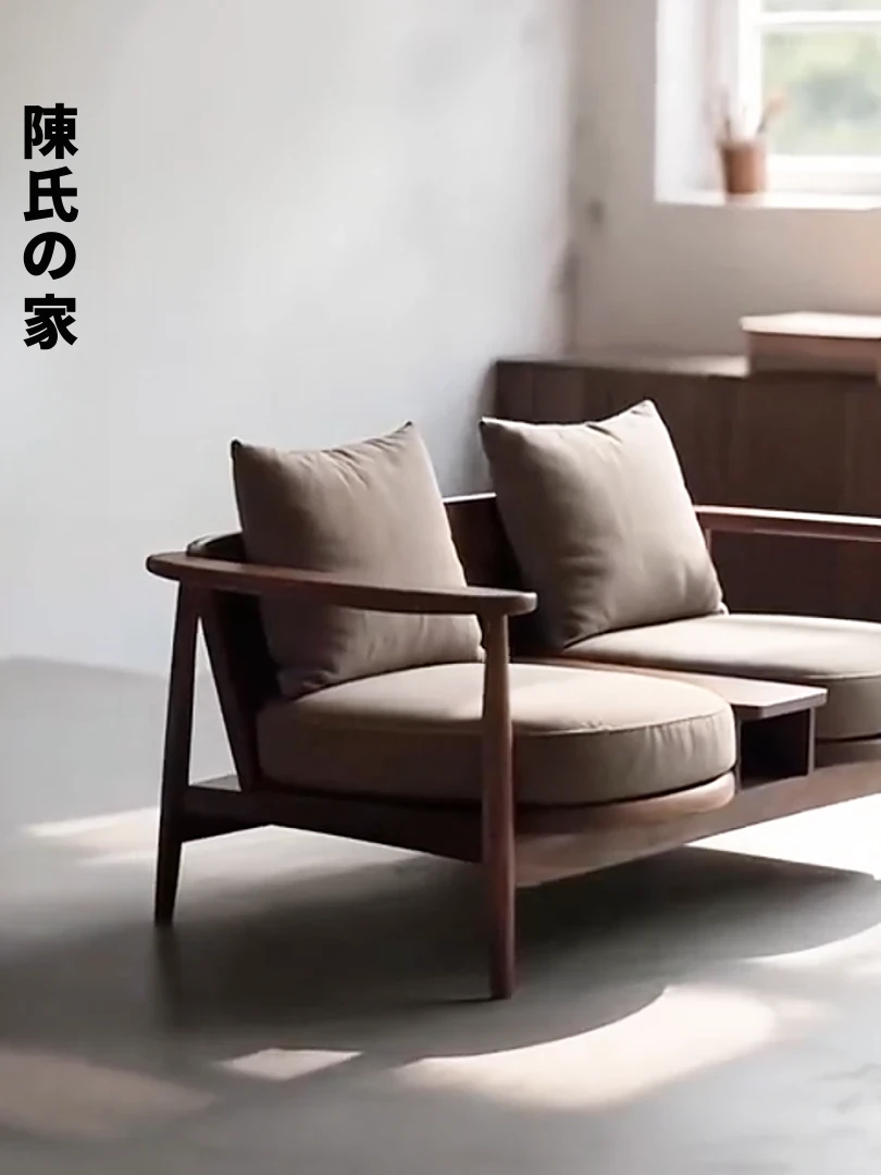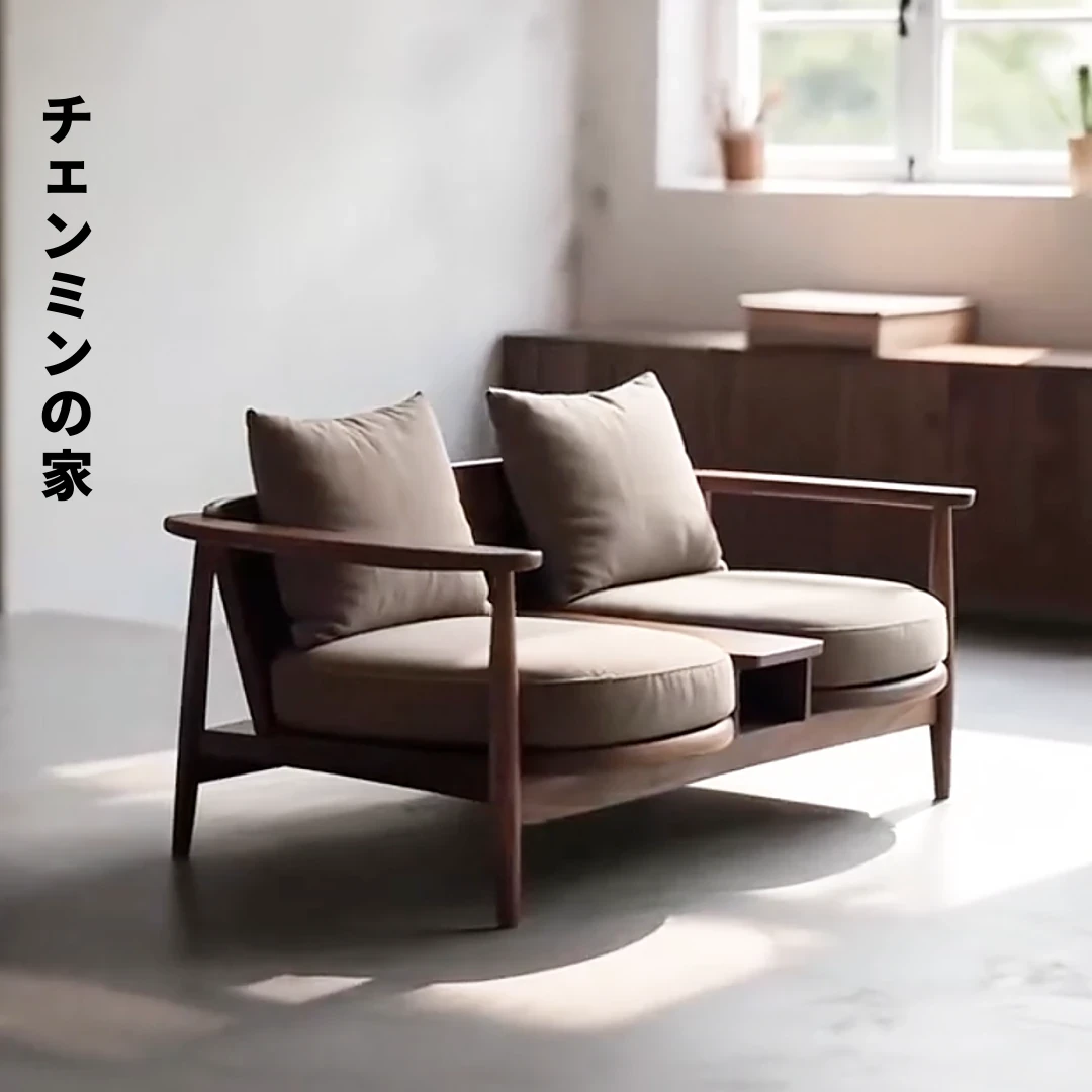 新中式ウッディーブラックウッド製実木ソファ モダンミニマリストスタイル 家庭用2人掛けソファ 2025年モデル 極簡軽奢なデザインで、洗練されたリビング空間を演出します!