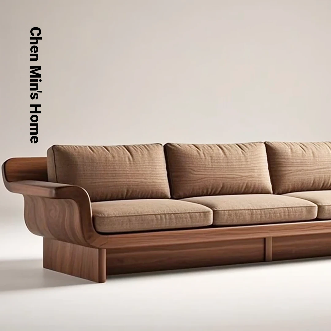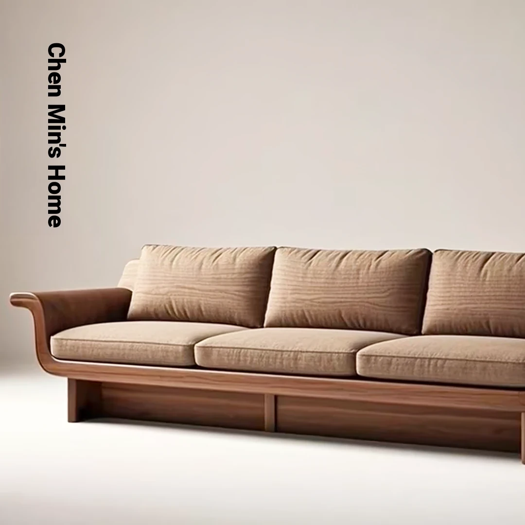 Modern Minimalist New Chinese Style Blackwood Solid Wood Sofa - 2025 Edition, Elegant Straight-Line Design for Living Room, Perfect for Home Décor and Luxurious Comfort