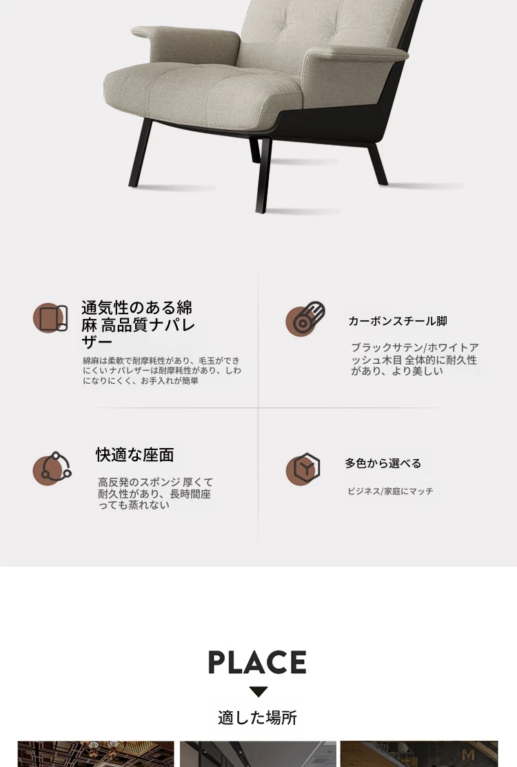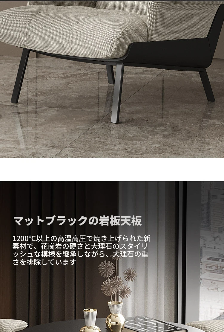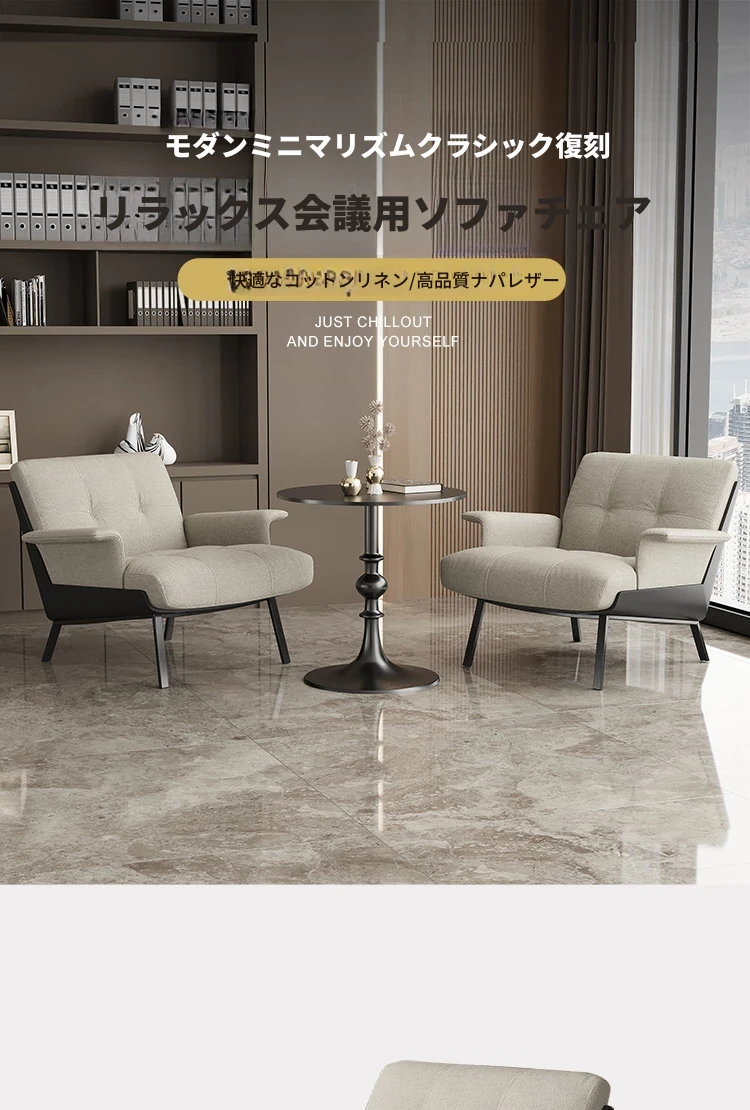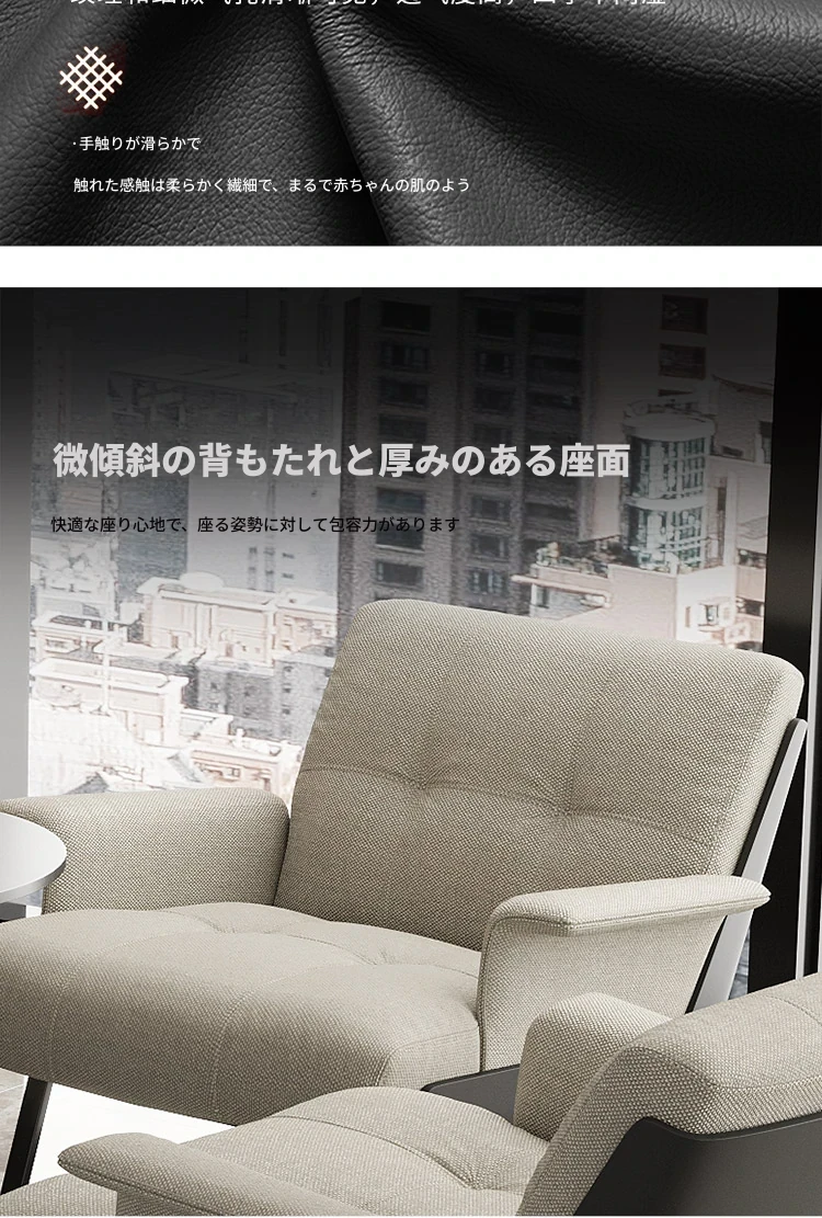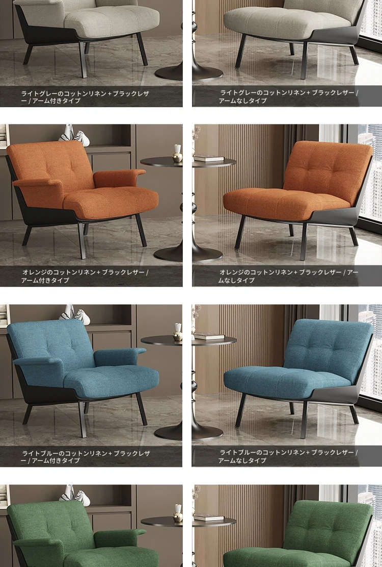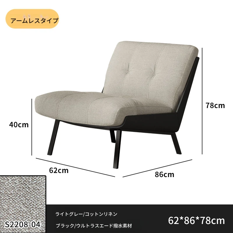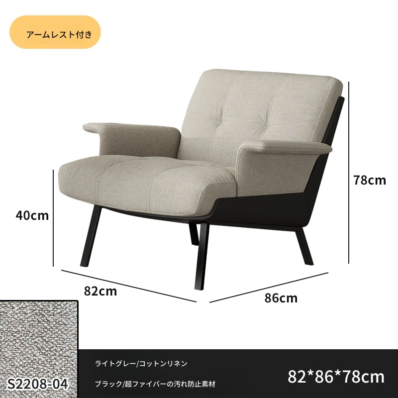 【アームレストタイプ】ライトグレーコットンリネン/黒色スエード/カーボンスチール
