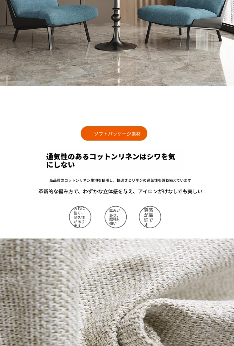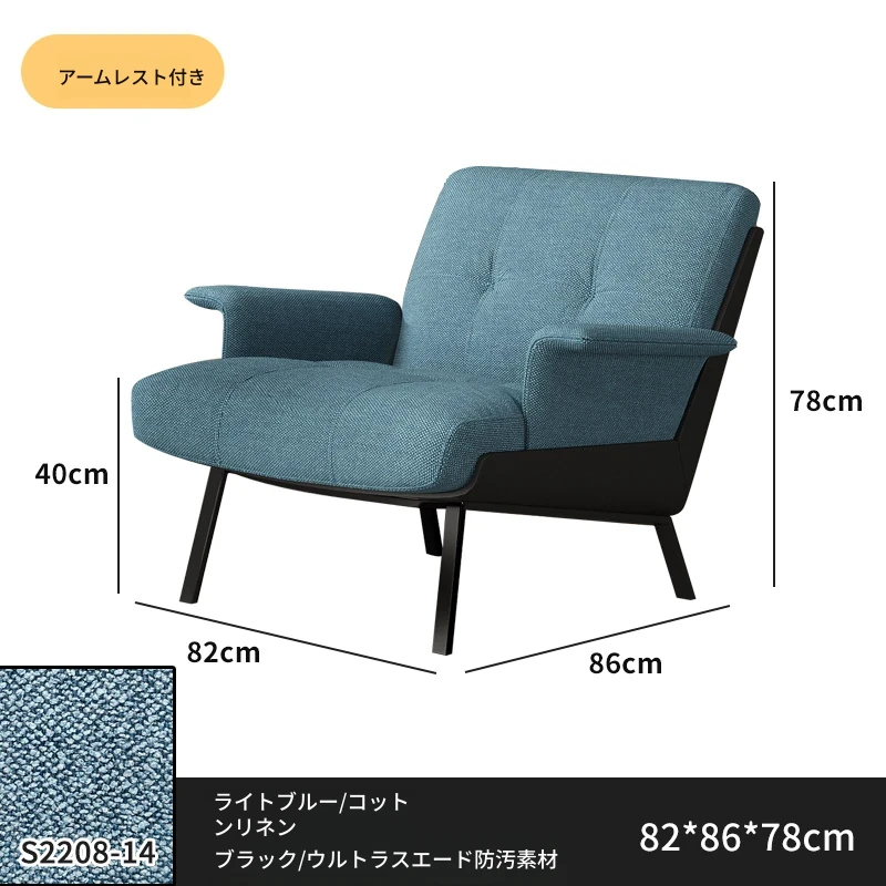【アームレストタイプ】ライトブルーコットンリネン/黒色スエード/カーボンスチール