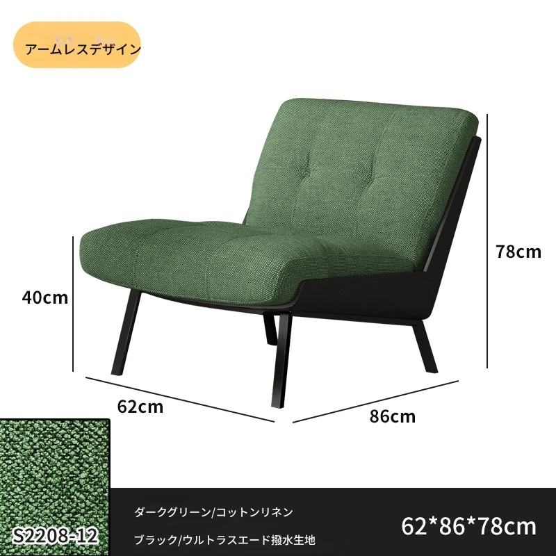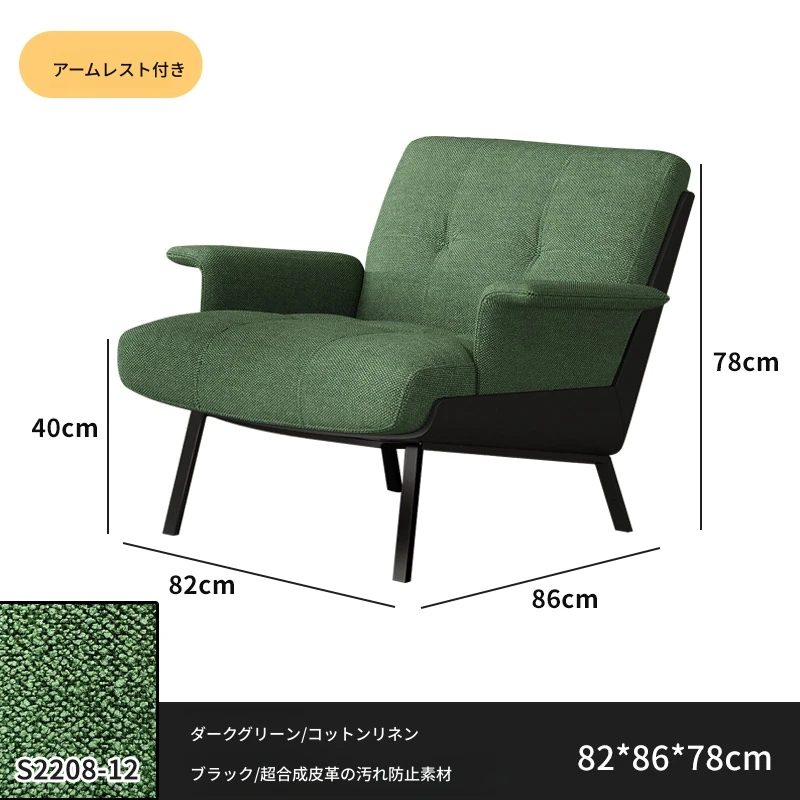 【アームレストタイプ】ダークグリーンコットンリネン/黒色スエード/カーボンスチール