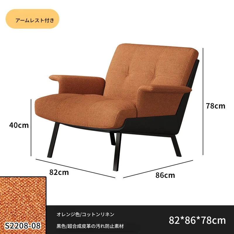 【アームレストタイプ】オレンジ色コットンリネン/黒色スエード/カーボンスチール