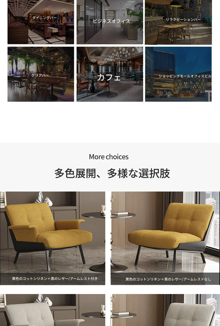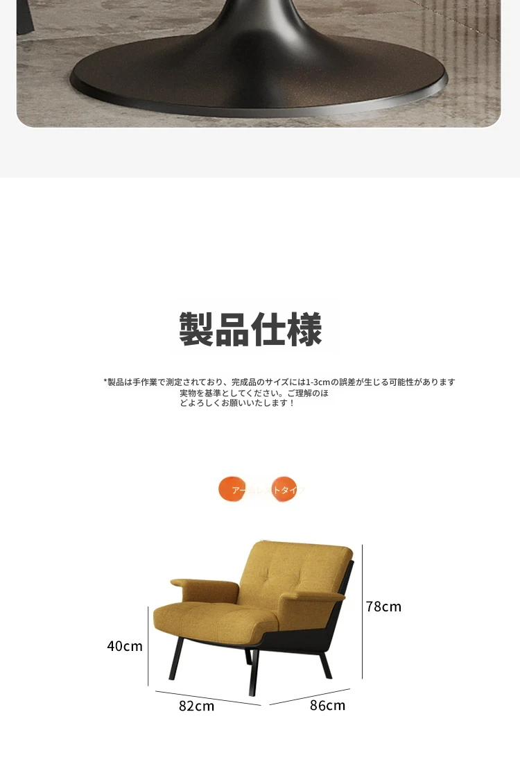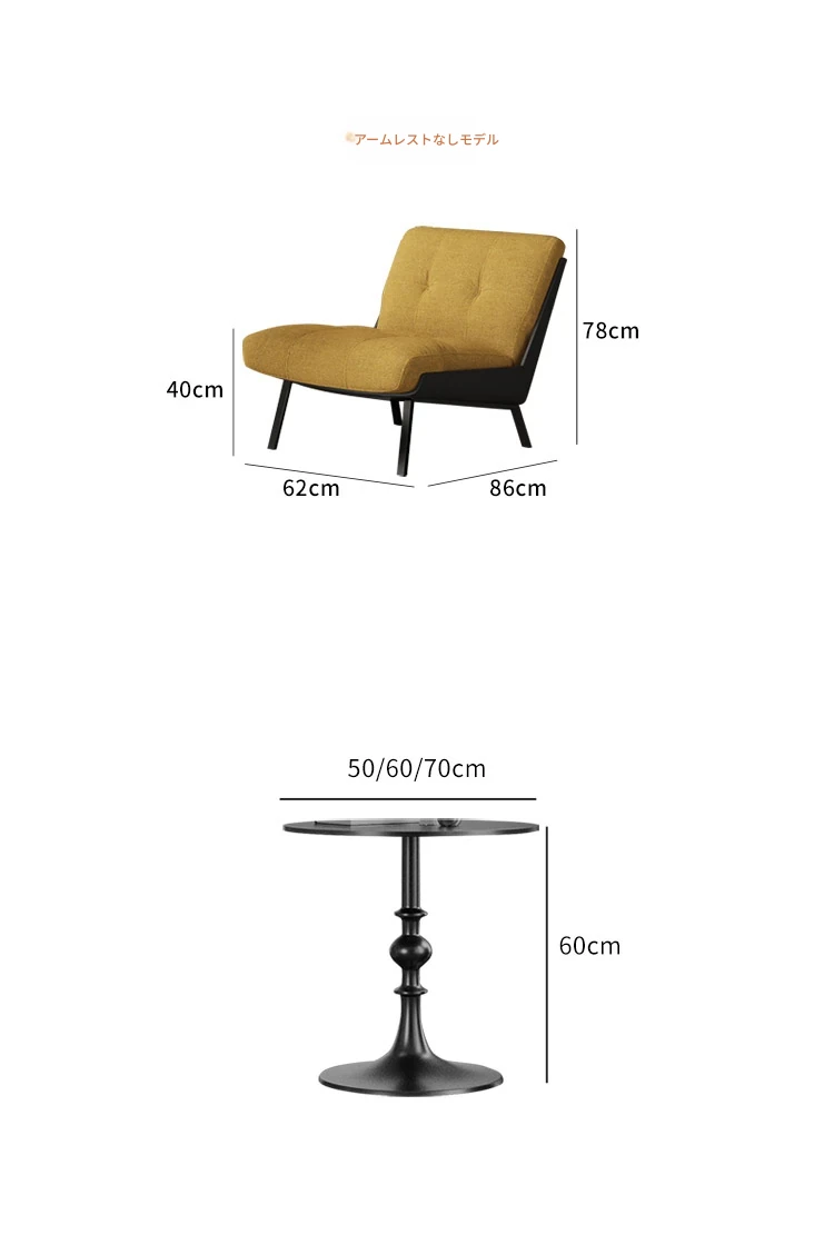 【アームレストタイプ】イエローコットンリネン/黒色スエード/カーボンスチール